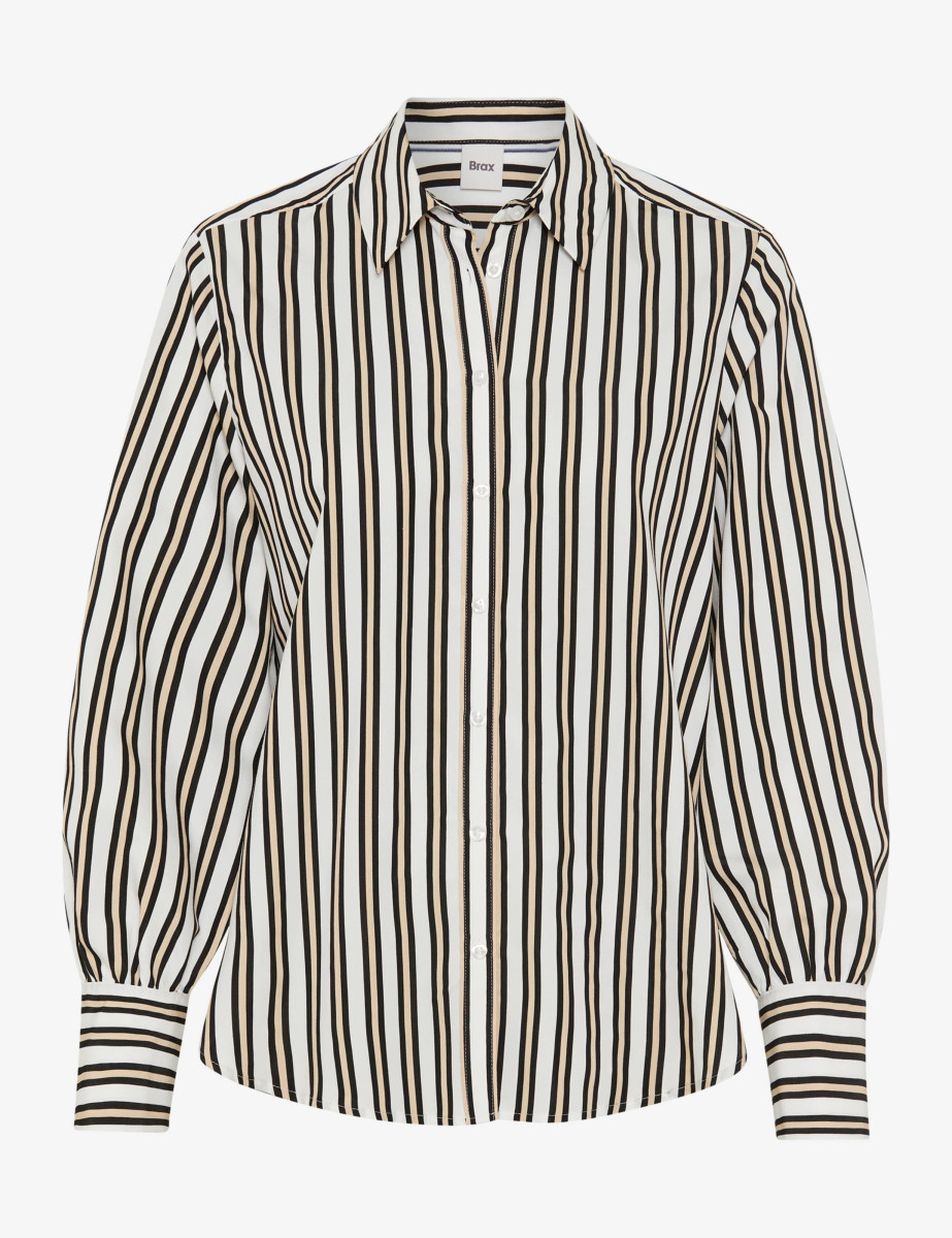 Mit der Bluse im STYLE VIC zieht ein Klassiker neu interpretiert in Ihre Garderobe ein: Die Hemdbluse überzeugt durch ihr vertikales Streifenmuster, streckend und zugleich modisch auf den Punkt. Der klassische Hemdkragen, die durchgehende Knopfleiste sowie die 1-Knopf-Manschetten unterstreichen den cleanen, eleganten Look. Raffiniert: Die leicht überschnittenen Schultern und der entspannte Schnitt verleihen der Bluse eine moderne Lässigkeit mit femininer Note. Gefertigt ist die Damenbluse aus hochwertigem Popeline-Gewebe mit Viskose und Polyamid – das Ergebnis ist ein angenehm leichter, weicher Griff mit fließendem Fall. Die Viskose sorgt für Tragekomfort und Atmungsaktivität, während der Polyamidanteil der Bluse eine formstabile Struktur verleiht – ideal für den Alltag wie fürs Büro. Die moderne Streifenbluse mit klassischem Twist ist die perfekte Wahl für stilbewusste Frauen, die klassische Elemente lieben, aber nicht auf moderne Akzente verzichten möchten. Vielseitig kombinierbar, immer gepflegt – ein echtes Must-have für jeden Kleiderschrank.