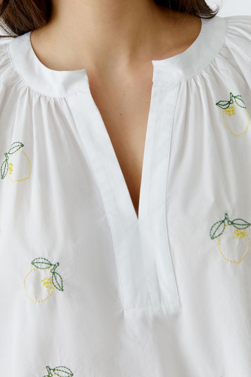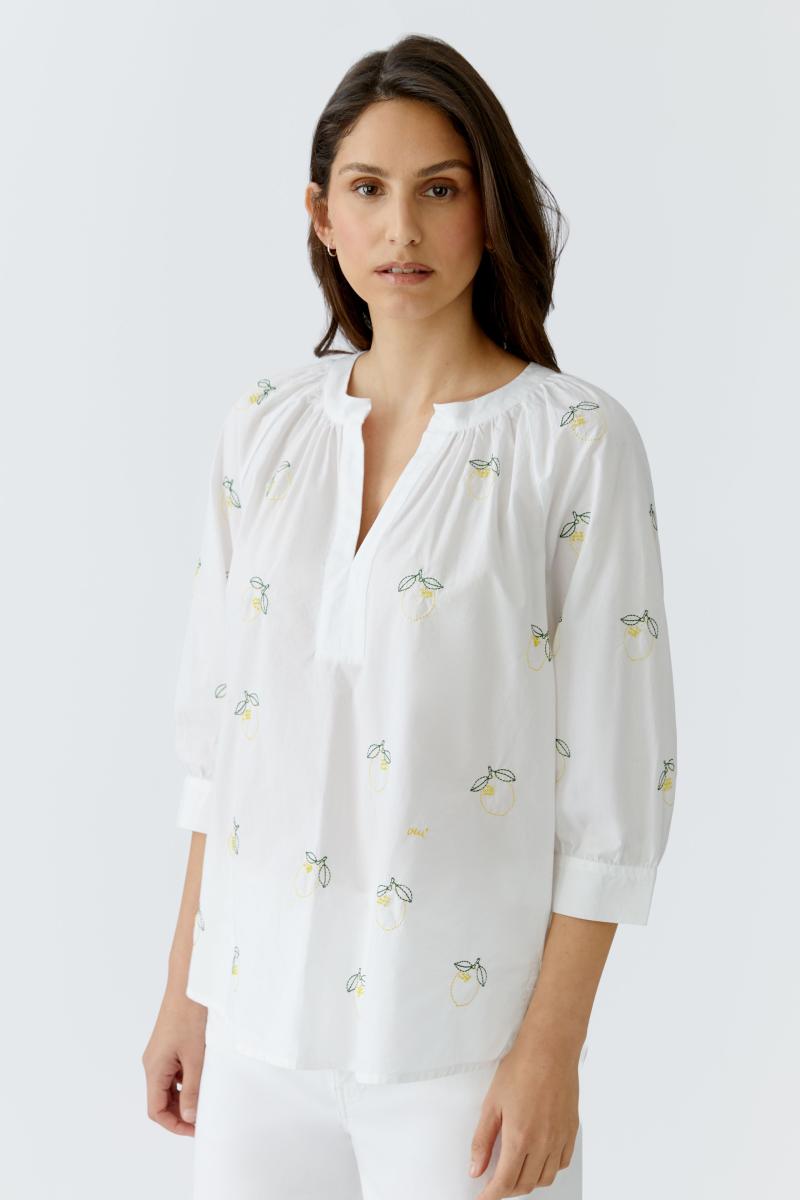 Bestickte Tunika mit Raffungen an der Blende, die für mehr Volumen und eine lässige Silhouette sorgt. Das reich verzierte Design setzt feminine Akzente und verleiht dem Look einen eleganten, zugleich unaufgeregten Charakter. Die angenehme Passform macht die Tunika zu einem vielseitig kombinierbaren Lieblingsstück für den Alltag.Lief.-Art-Nr: 0097583