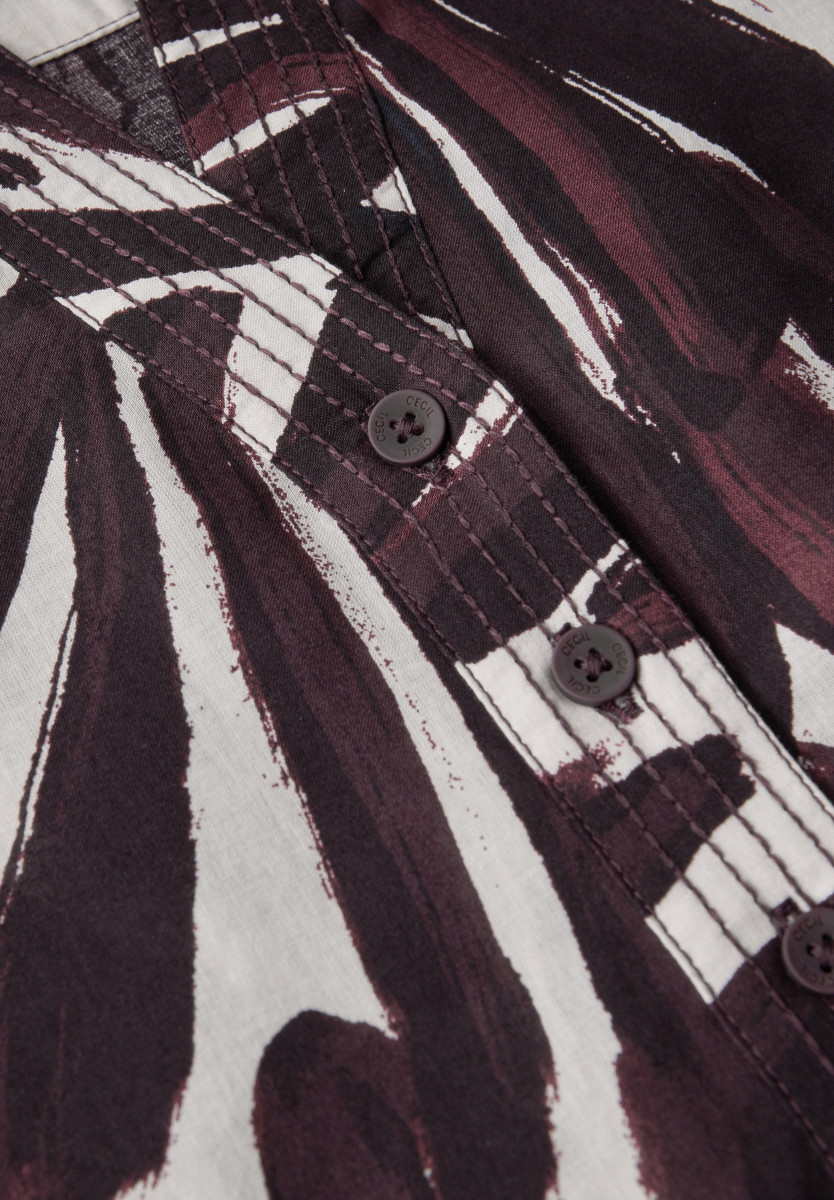 Mit dekorativer Knopfleiste und elastischen Bündchen am 3/4-Arm begeistert diese Tunika von CECIL für Damen mit sommerlichem Flair und angenehmem Tragekomfort. Das grafische Muster verleiht dem Look eine moderne Note, während die reine Baumwolle für ein angenehmes Hautgefühl sorgt. Der Split Neck rundet den femininen Stil ab. Damenbluse Split Neck mit dekorativer Knopfleiste 3/4-Arm mit elastischen Bündchen Grafisches Muster Reine Baumwolle Material: 100% Baumwolle