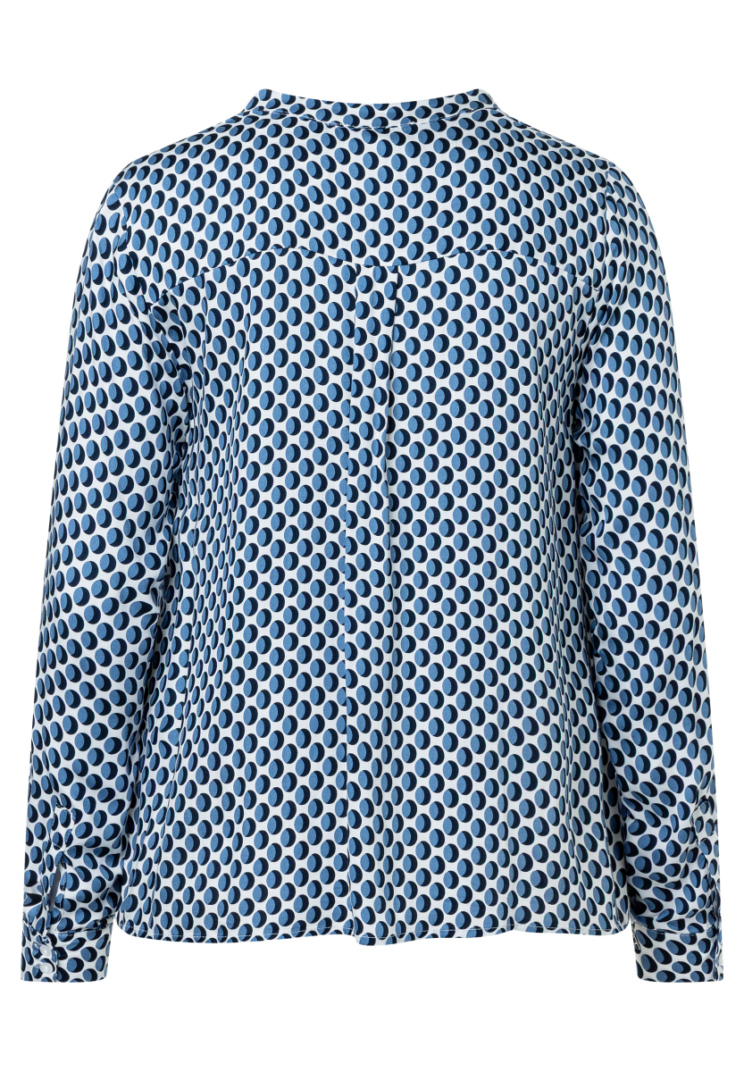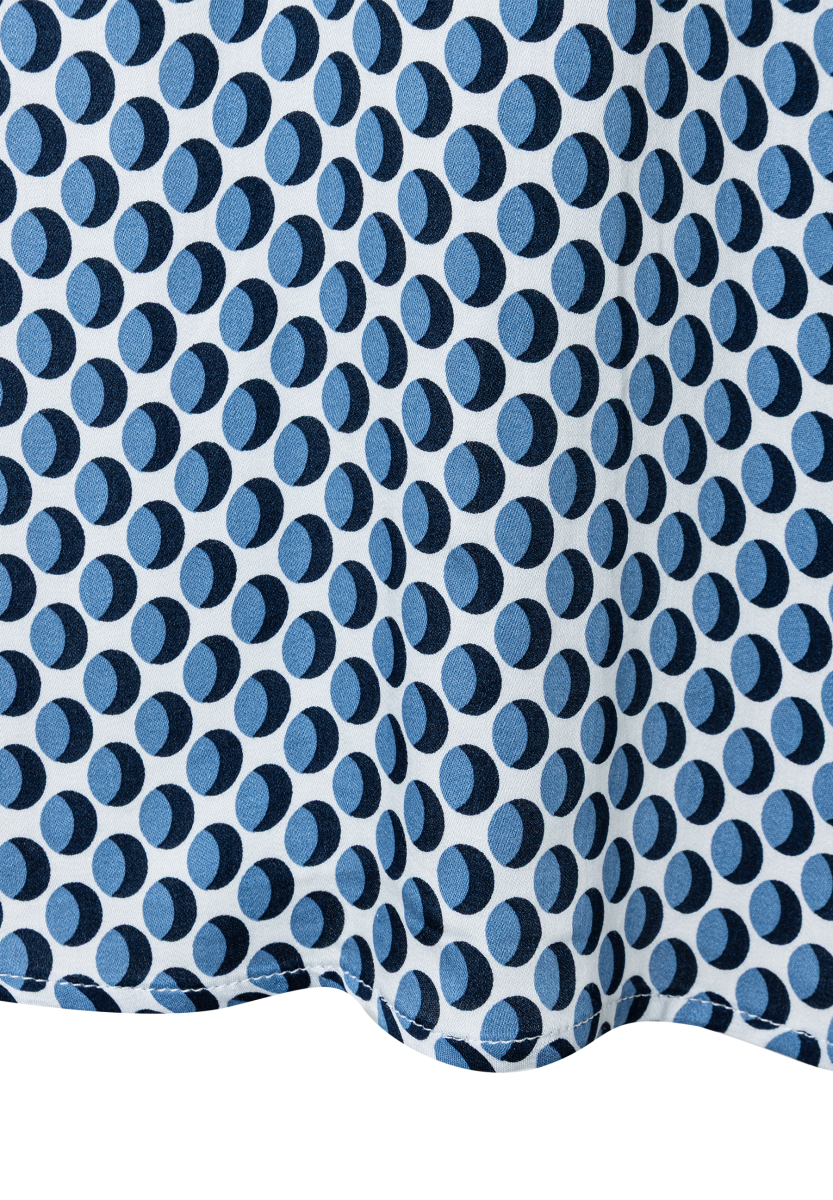 Die fließende Viskosebluse von MORE & MORE mit grafischem Print in weiß/blau/schwarz können Sie ganz klassisch mit gepflegter Businesshose kombinieren oder aber casual mit sportiver Jeans.