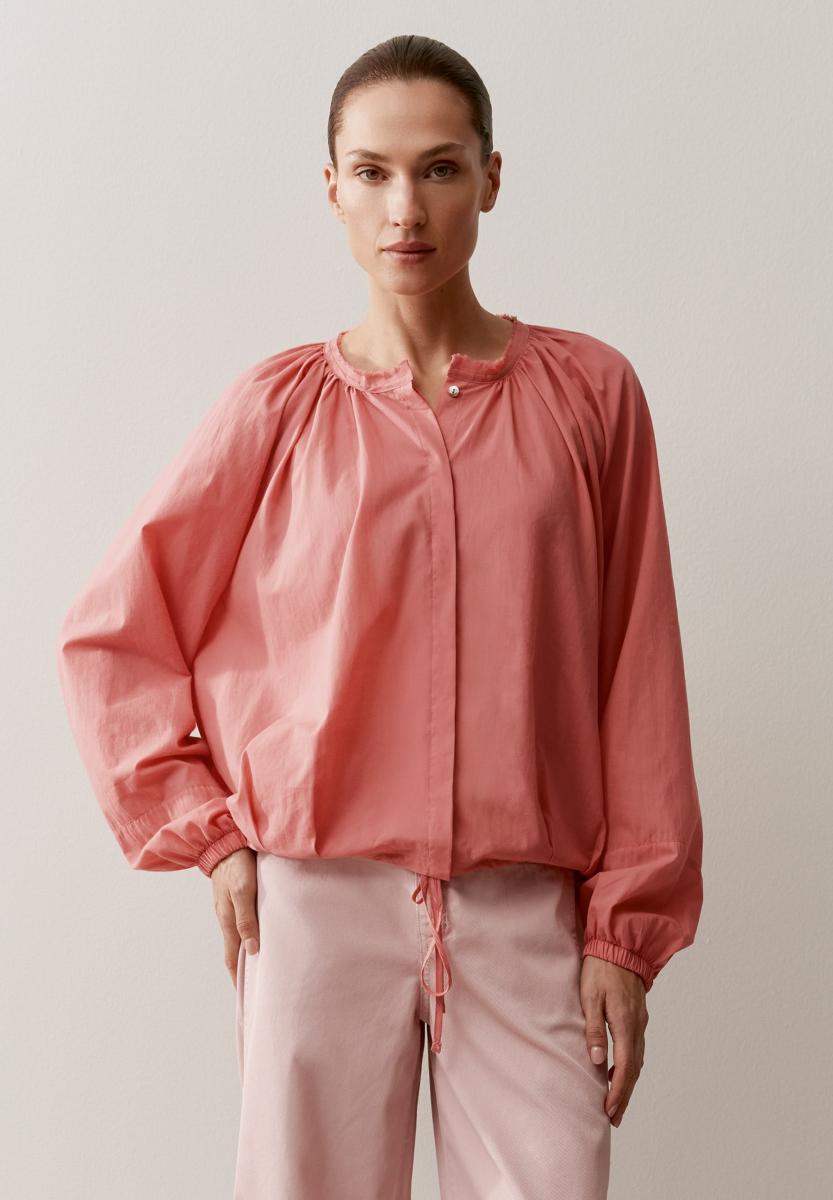 Weite, blusige Form | Kragenlos mit rundem Ausschnitt | Verdeckte Knofleiste | Lange, weite Ärmel mit Gummizug an den Enden | Tunnelzug am unteren Saum