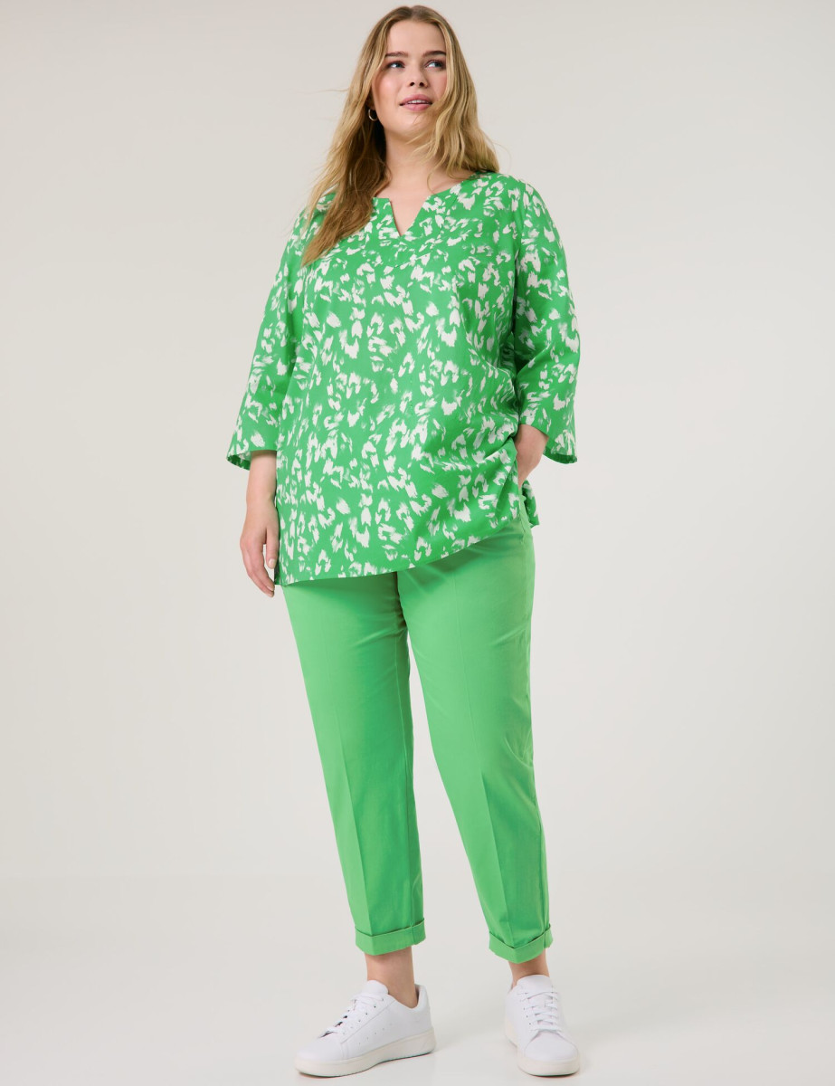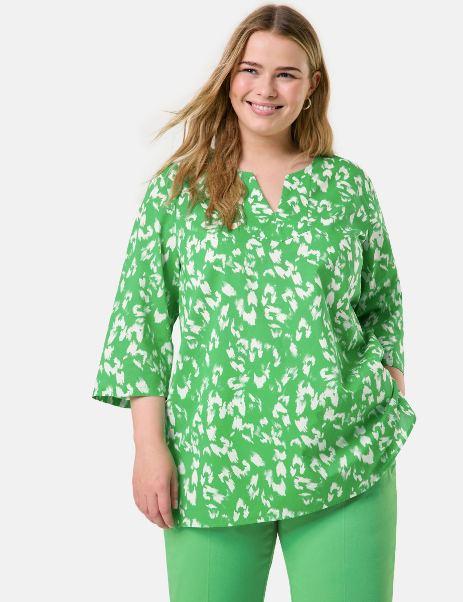 Seitliche Saumschlitze. Sommerlook gesucht? Gefunden! Diese Tunika bringt mit ihrem zweifarbigen Allover-Print Farbe ins Spiel und überzeugt mit luftigem Baumwoll-Voile. Der lockere Schnitt, 3/4-Ärmel und seitliche Saumschlitze machen sie zum perfekten Begleiter für warme Tage. Ob casual zur Jeans oder als Beach-Cover-up – einfach immer stylisch!