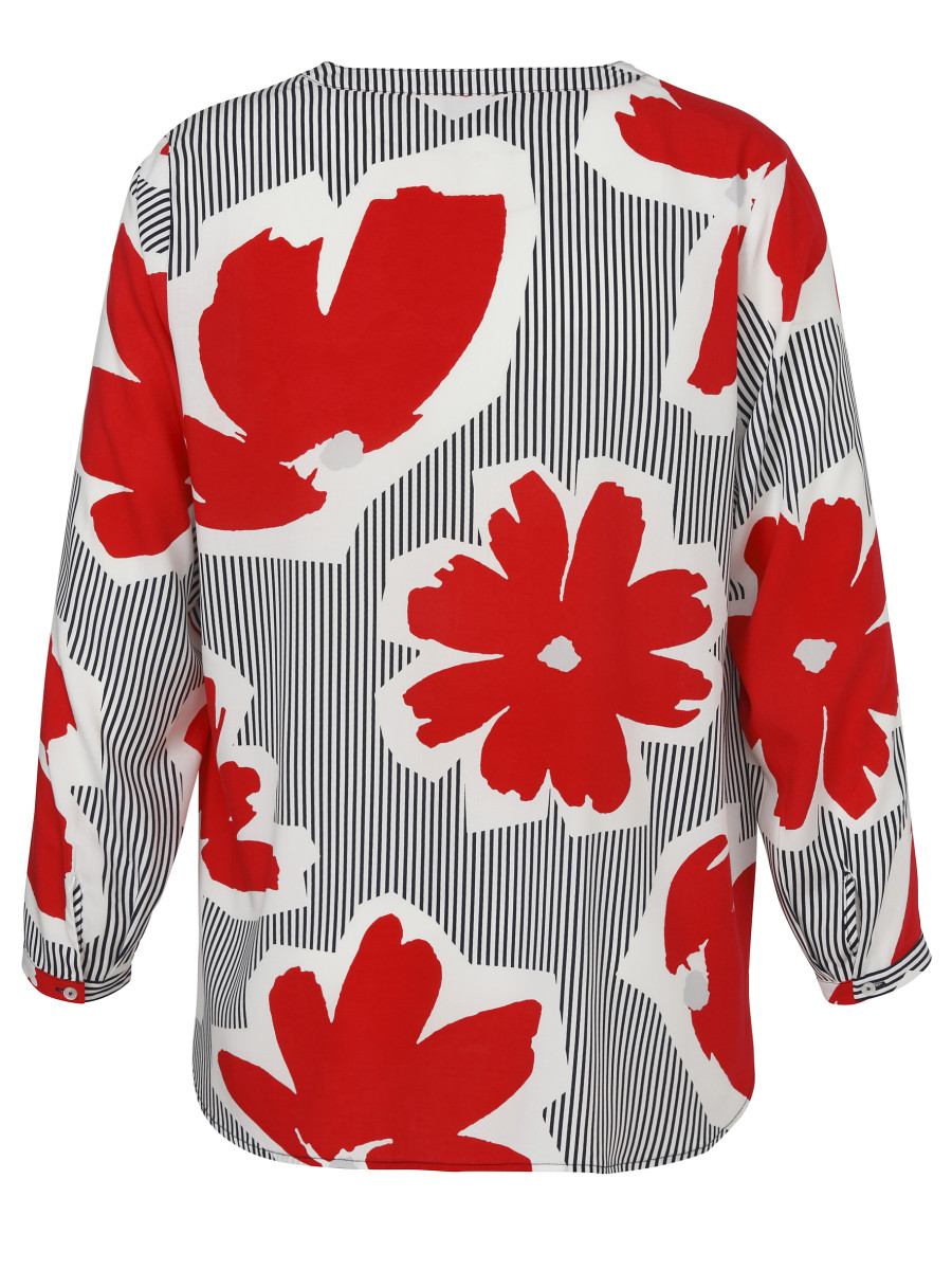 Diese Bluse für Damen besticht durch einen V-Ausschnitt und lange Ärmel mit attraktivem Druck. Sie lässt sich vielseitig kombinieren und passt sowohl zu eleganten als auch zu lässigen Outfits. Der angenehme Schnitt bietet Komfort für den Alltag.Lief.-Art-Nr: 2611901