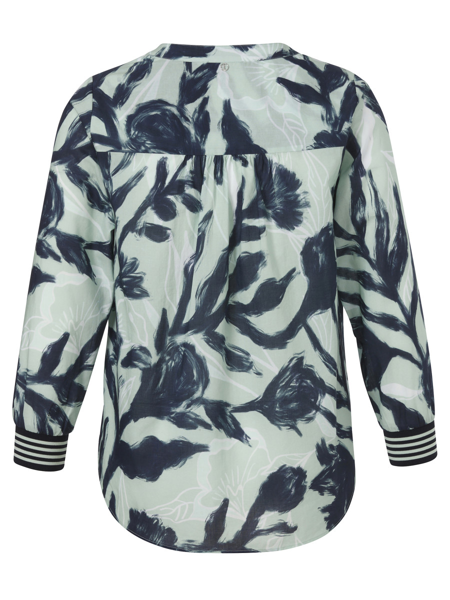 Diese Bluse für Damen überzeugt mit einem frischen Mint-Multicolor-Druck und einem femininen V-Ausschnitt. Die 1/1-Ärmel sorgen für einen angenehmen Sitz und machen das Modell vielseitig kombinierbar. Sie lässt sich gut zu Jeans oder Röcken stylen und eignet sich für legere sowie gepflegte Looks.Lief.-Art-Nr: 2652665