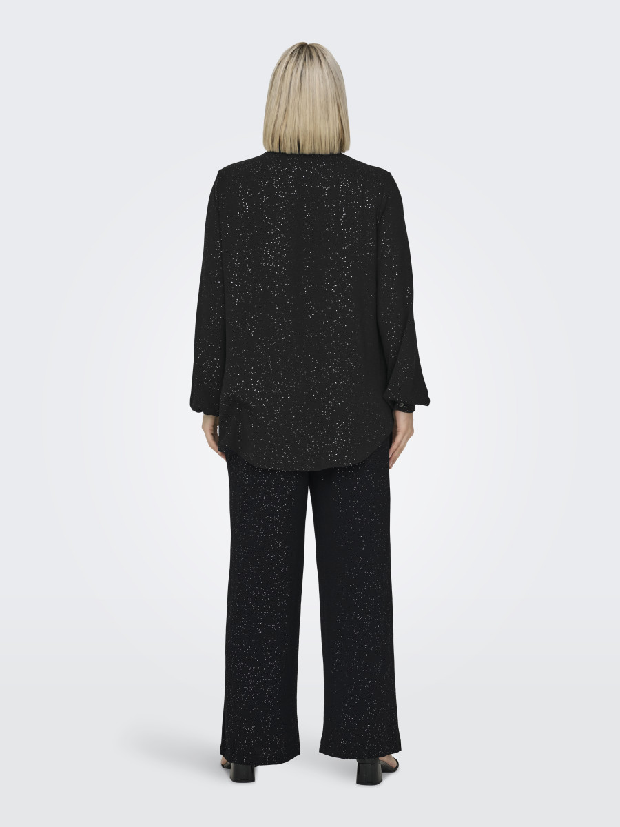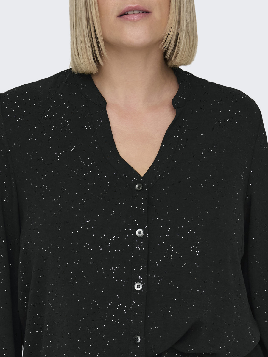Bringe sanfte Farben und feine Details in deine Garderobe mit einer femininen Bluse, die sich leicht mit zeitlosen Jeans oder einem eleganten Rock kombinieren lässt.ONLY CARMAKOMA ist für Frauen mit Kurven, die Mode lieben und ihren persönlichen Stil selbstbewusst zum Ausdruck bringen. Die Kollektionen bieten modernen Denim, schmeichelhafte Passformen und Styles für jeden Anlass – von kantig und cool bis feminin und klassisch. Unsere Auswahl an Kleidung in Übergrößen ist so konzipiert, dass sie Ihre Kurven betont und Komfort bietet, damit sich jede Frau in Übergrößen in ihrem Look schön und selbstbewusst fühlen kann. - Produkttyp : Hemd - Hals : Mandarin Kragen - Ärmel : Langarm - Ärmel : Tief angesetzte Schulter - Verschluss : Knopfleiste - Details : Glitzer-Effekt, Hinten länger - Passform : Normal geschnitten