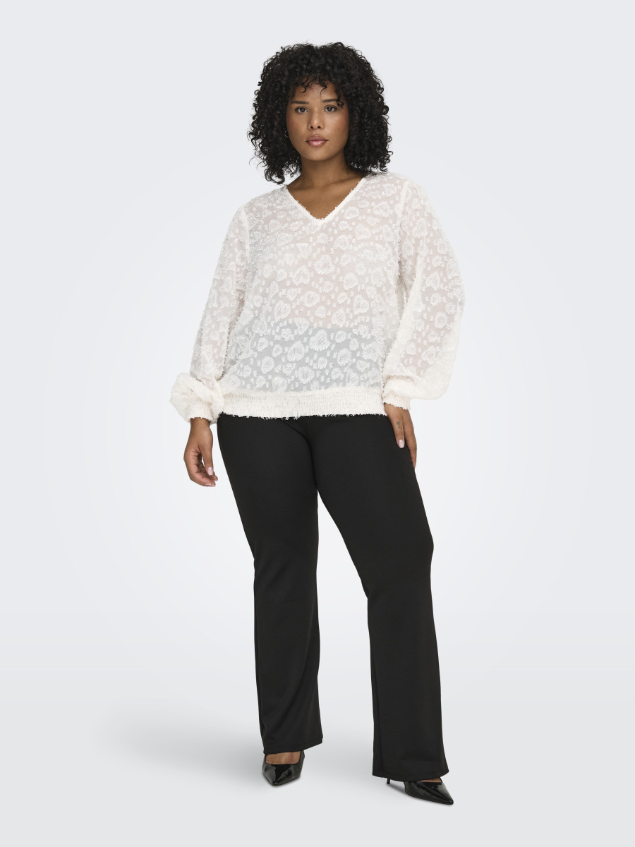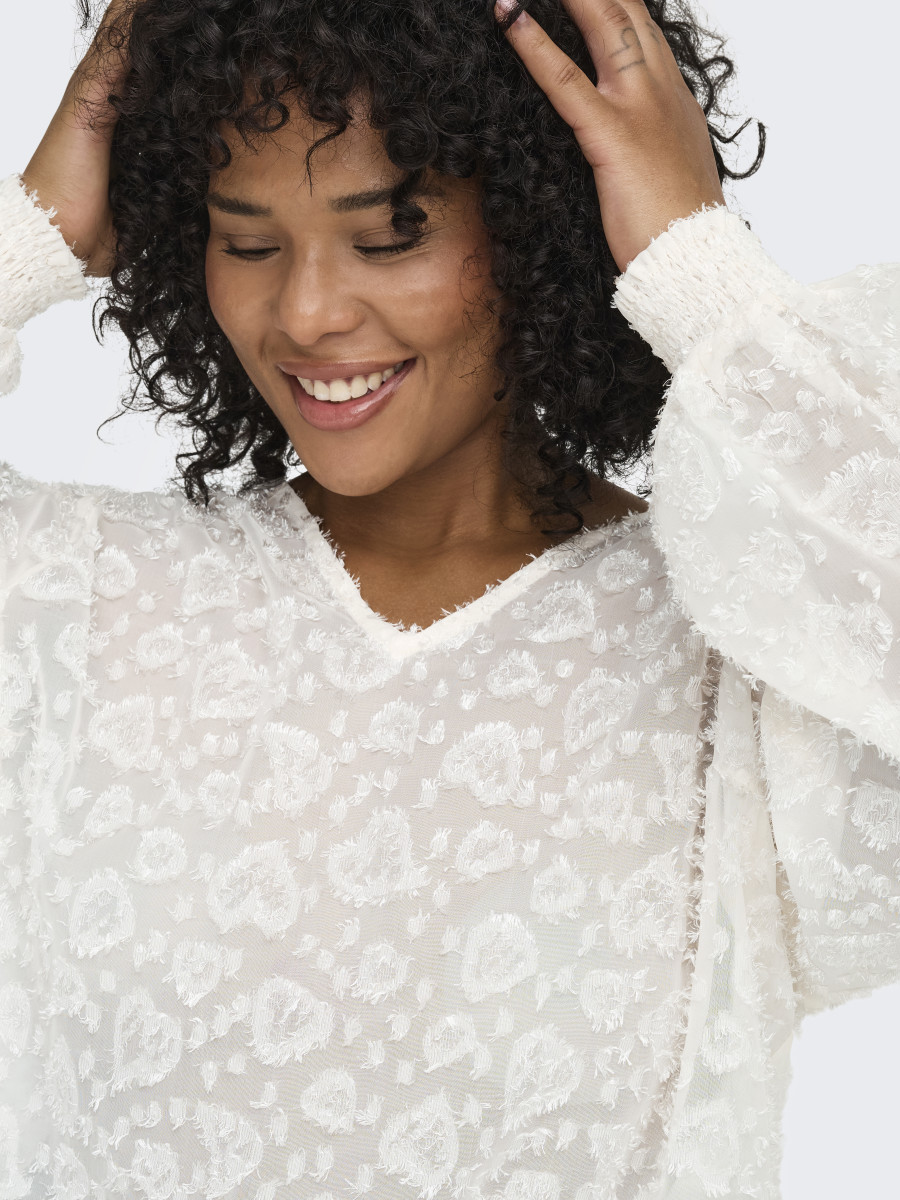 Verändere dein Alltagsoutfit in Sekundenschnelle, indem du mit einem femininen Oberteil einen weichen und schicken Akzent setzt. Gewebte Stoffe werden durch das Verweben von zwei oder mehr Garnen hergestellt und erhalten so ein zeitloses Aussehen. ONLY CARMAKOMA ist ein internationales Modelabel für kurvige Frauen in Größe 42 bis 54. Das Label entwirft Styles, die alle Vorzüge von schönen, weiblichen und kurvigen Silhouetten betonen, damit du jeden Tag von morgens bis abends umwerfend aussiehst. - Produkttyp : Bluse - Hals : V-Ausschnitt - Ärmel : Langarm - Ärmel : Ballonärmel - Manschetten : Gesmokte Ärmelbündchen - Details : 3D-Stickerei, Knopf-Details, Gesmoktes Detail - Passform : Normal geschnitten