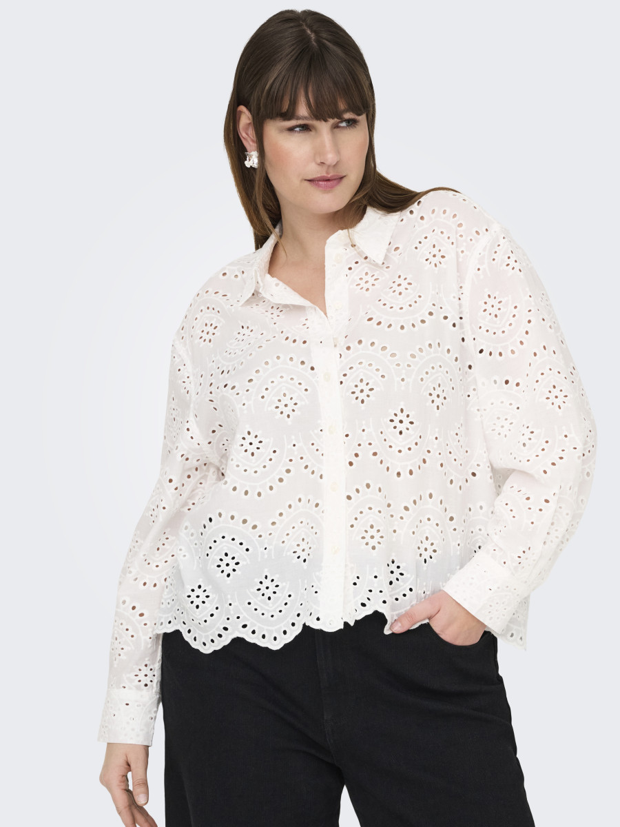 Bringe sanfte Farben und feine Details in deine Garderobe mit einer femininen Bluse, die sich leicht mit zeitlosen Jeans oder einem eleganten Rock kombinieren lässt. Curve-Styles sind so designt, dass sie kurvigen Frauen perfekt passen.. - Produkttyp : Hemd - Hals : Hemdkragen - Ärmel : Langarm - Manschetten : Ärmelbündchen mit Knopf - Verschluss : Knopfleiste - Details : Bestickt - Passform : Locker geschnitten