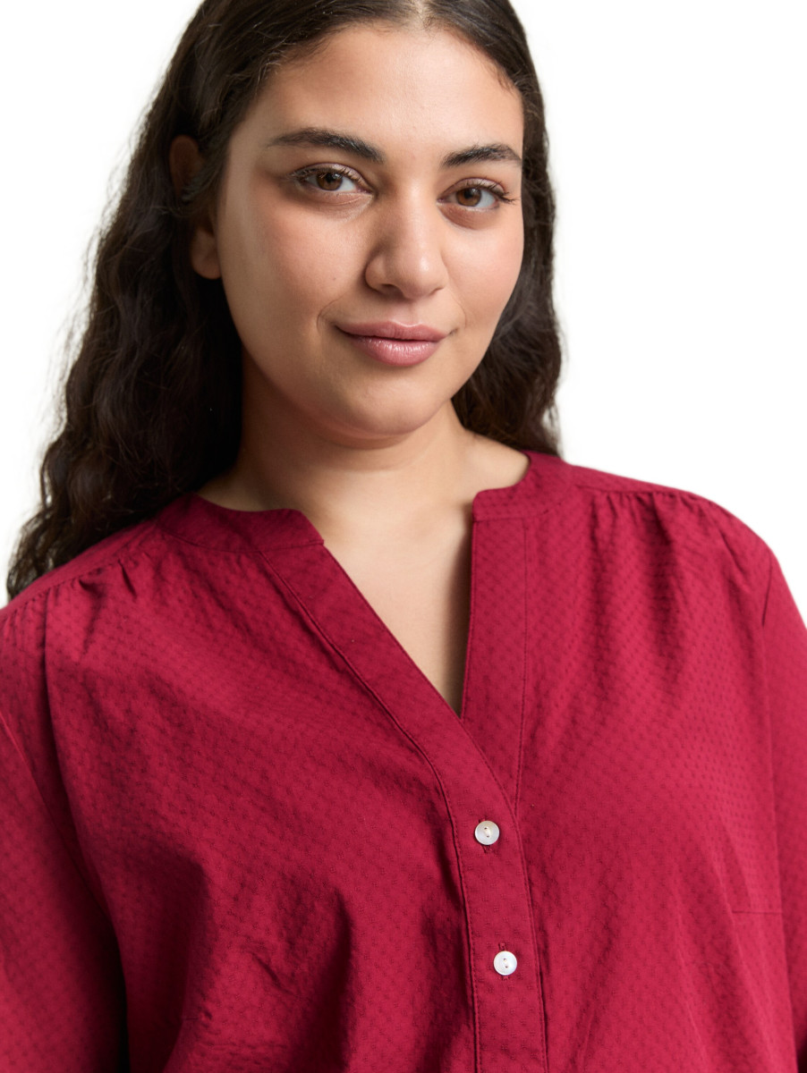 Klassische, langärmlige Bluse mit Dobby-Struktur und halber Knopfleiste.