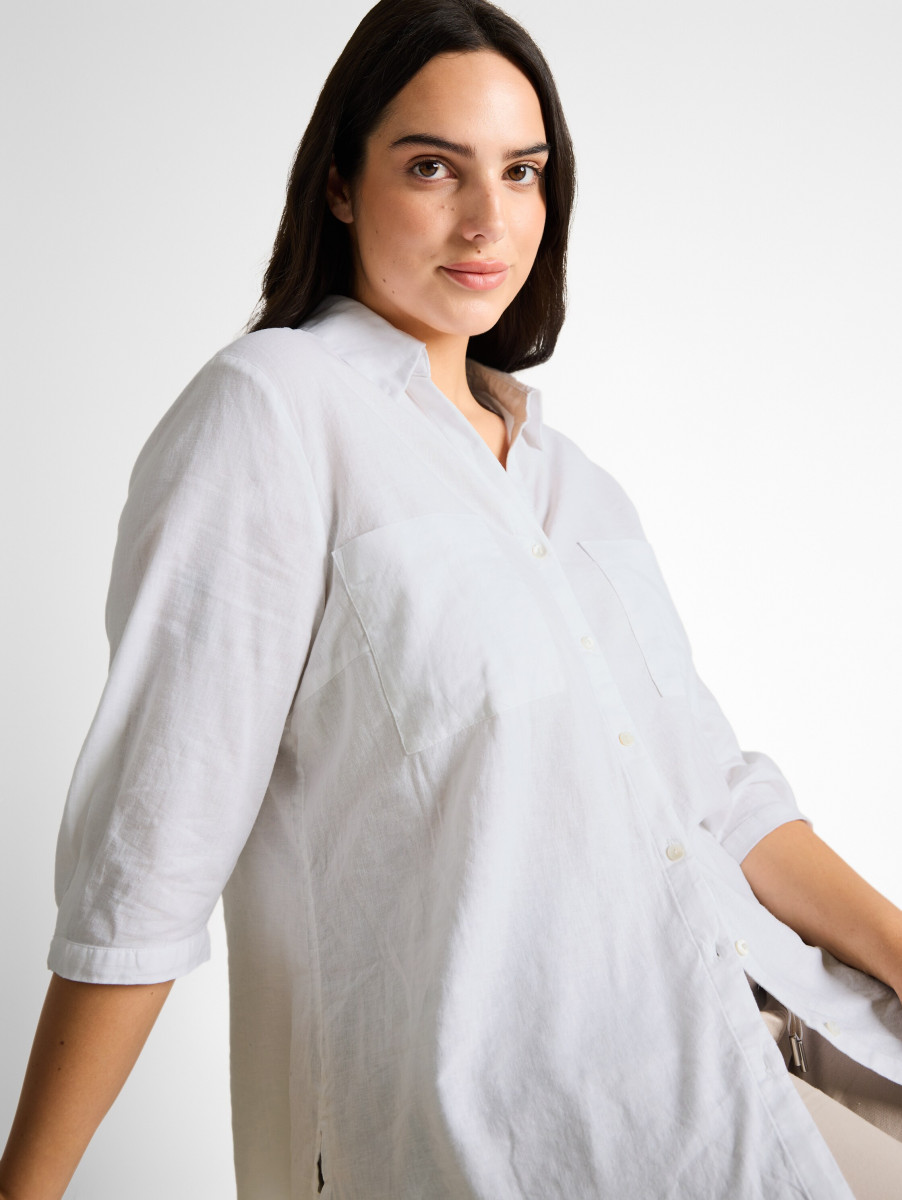 Produktinformationen "Curvy Hemdbluse mit Leinenanteil"