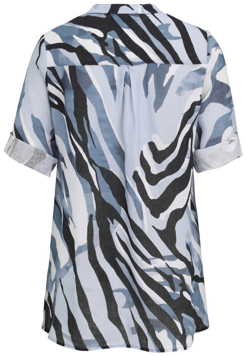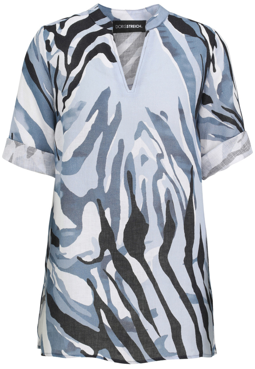 Die lässige Bluse von Doris Streich ist aus softem Leinen gefertigt. Der dekorativ verfremdete Animalprint macht diese Bluse zum Hingucker: Die Ärmel der 3/4-Arm Bluse können hochgekrempelt werden. Die Rückenpasse mit tiefer Falte und die Seitenschlitze bieten höchsten Tragekomfort. Alloverprint, nicht platziert - jedes Teil ein Unikat.
