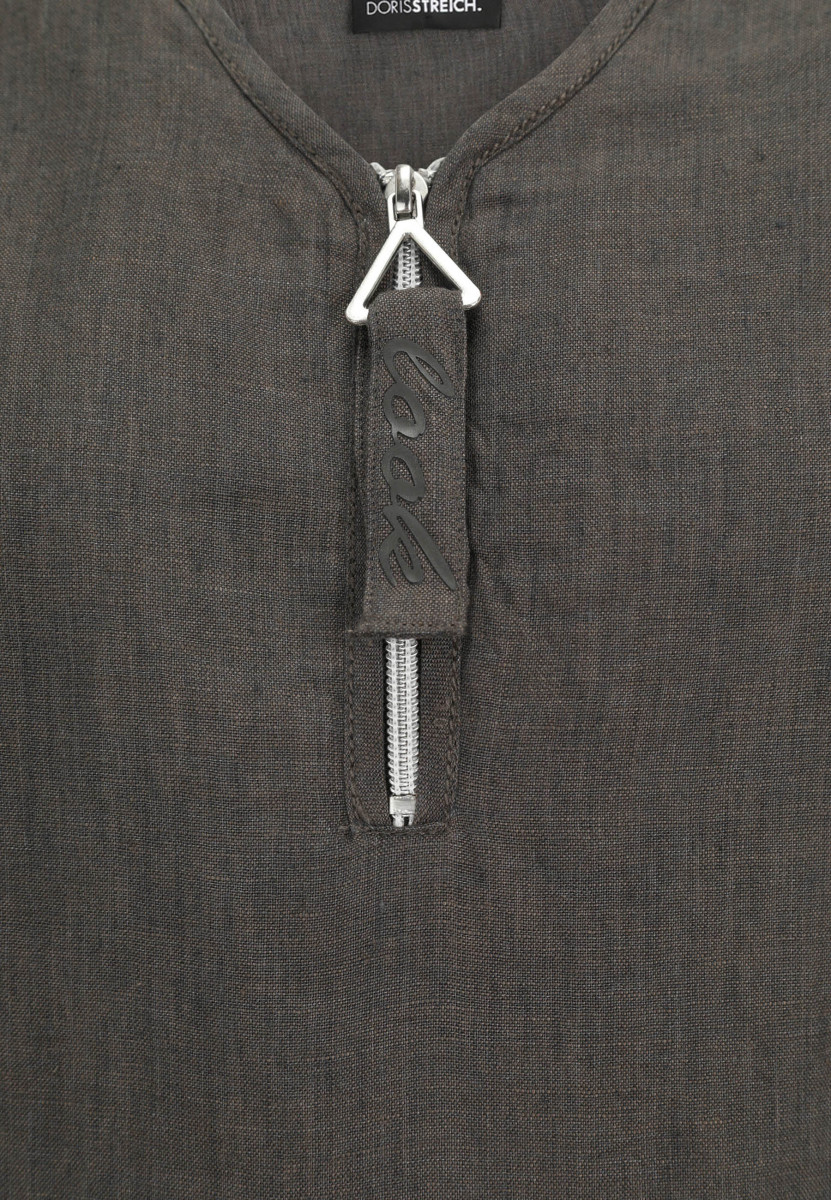 Die lässige Schlupfbluse von Doris Streich ist aus softem Leinen gefertigt. Sie kommt in einem angesagten, fließenden Schnitt. Dank seitlichen Schlitzen im Saum und der weitegebenden Falte im Rückenteil bietet sie höchsten Tragekomfort und zaubert eine schmale Silhouette. Die softe Leinen-Qualität sorgt auch bei hohen Temperaturen für viel Komfort. Der Reißverschluss mit dem dekorativen Anhänger LOOK und die Kordeln in den Ärmeln, mit denen die Ärmel hochgerafft werden können, runden die Bluse modisch ab. Ein vielseitig kombinierbares Teil für jeden Tag!Lief.-Art-Nr: 273135