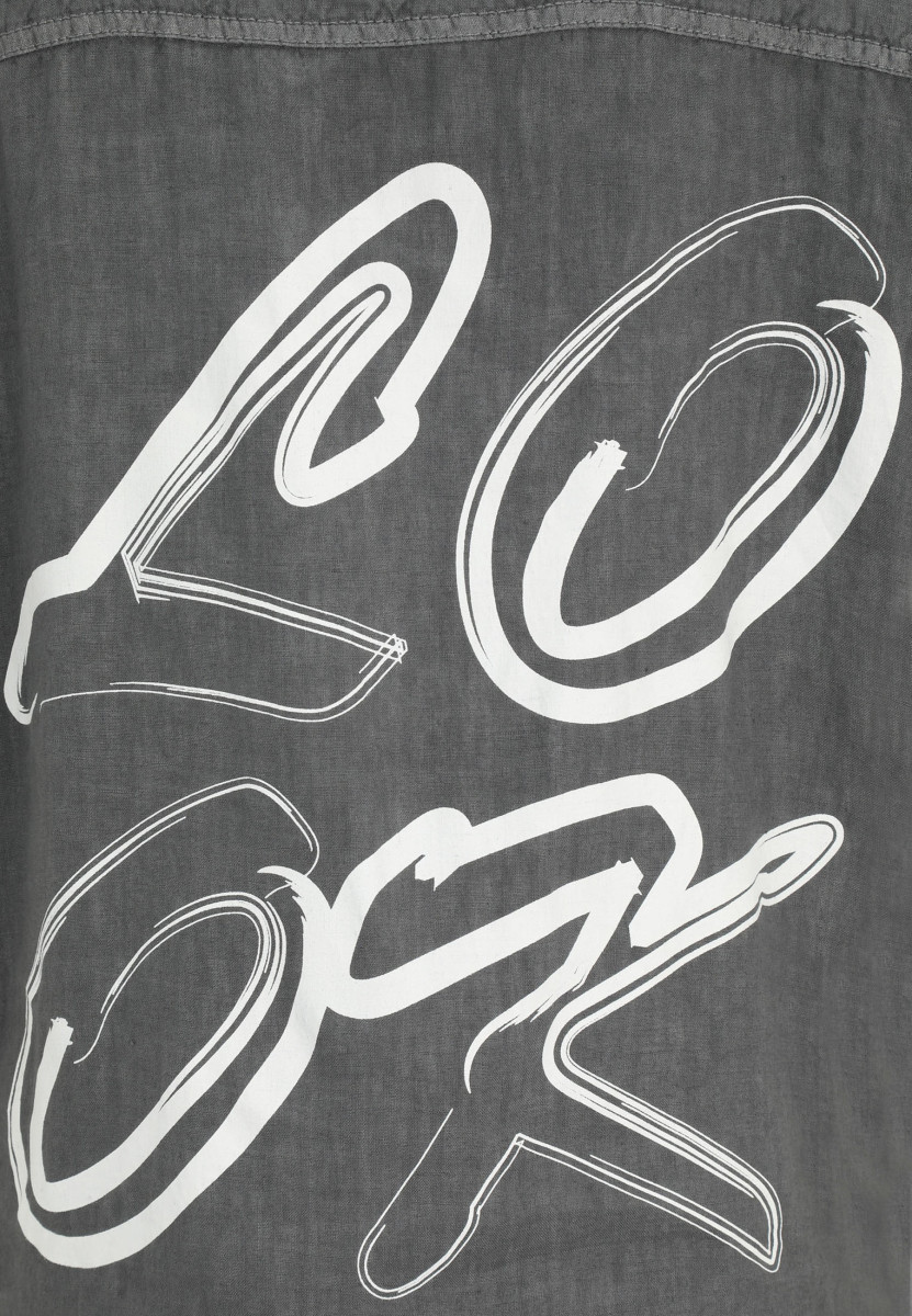 Diese lässige Leinen-Jacke von Doris Streich zeigt überschnittene Schultern und einen grafischen Motiv-Print LOOK auf dem Rücken. Der Style ist mit Hemdkragen, Druckknopfverschluss, zwei dekorativen Patten und zahlreichen Teilungsnähten ausgestattet. Die Vintage-Waschung im Used-Look verleiht der Jacke Charakter und sorgt für guten Tragekomfort.Lief.-Art-Nr: 105130