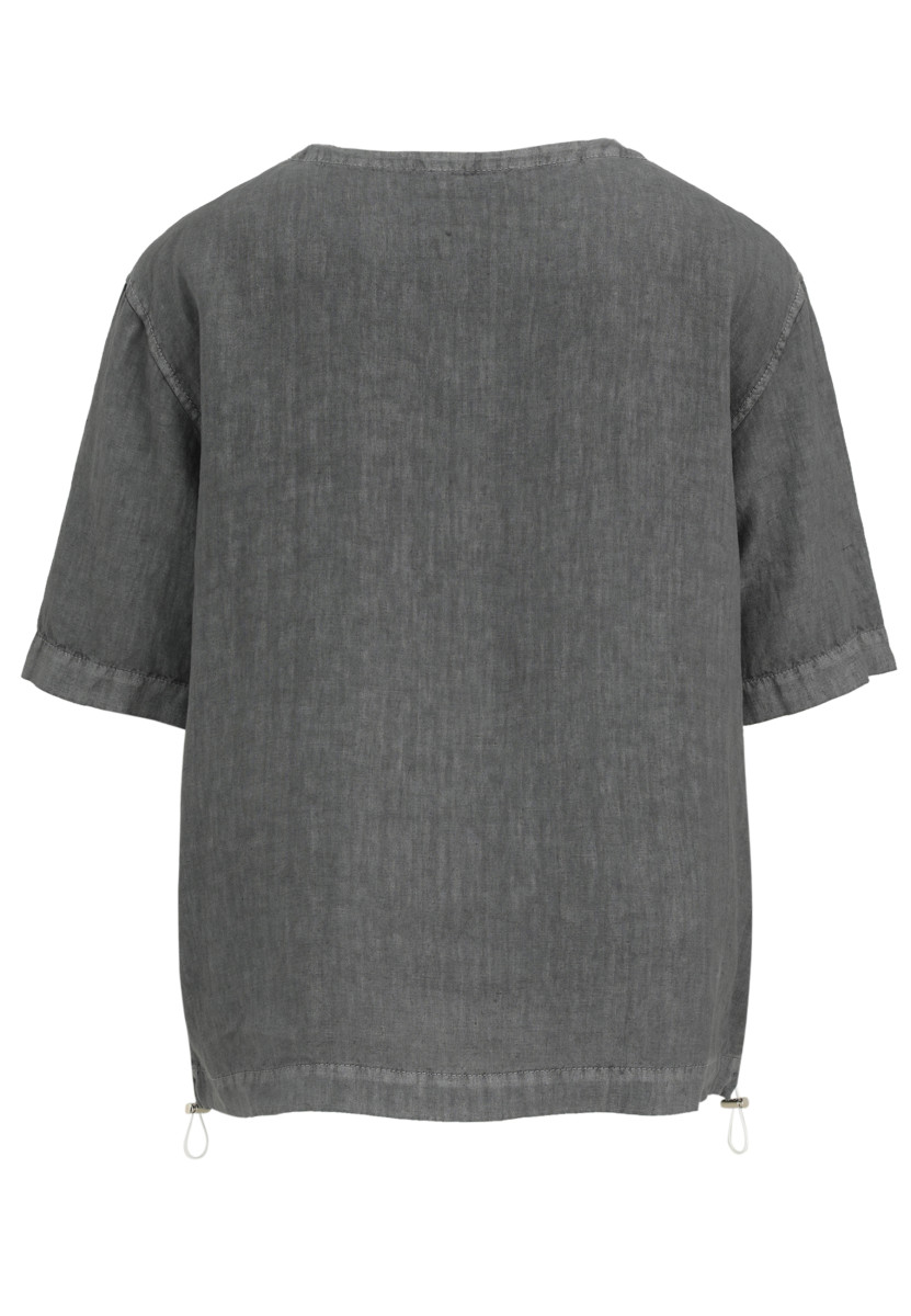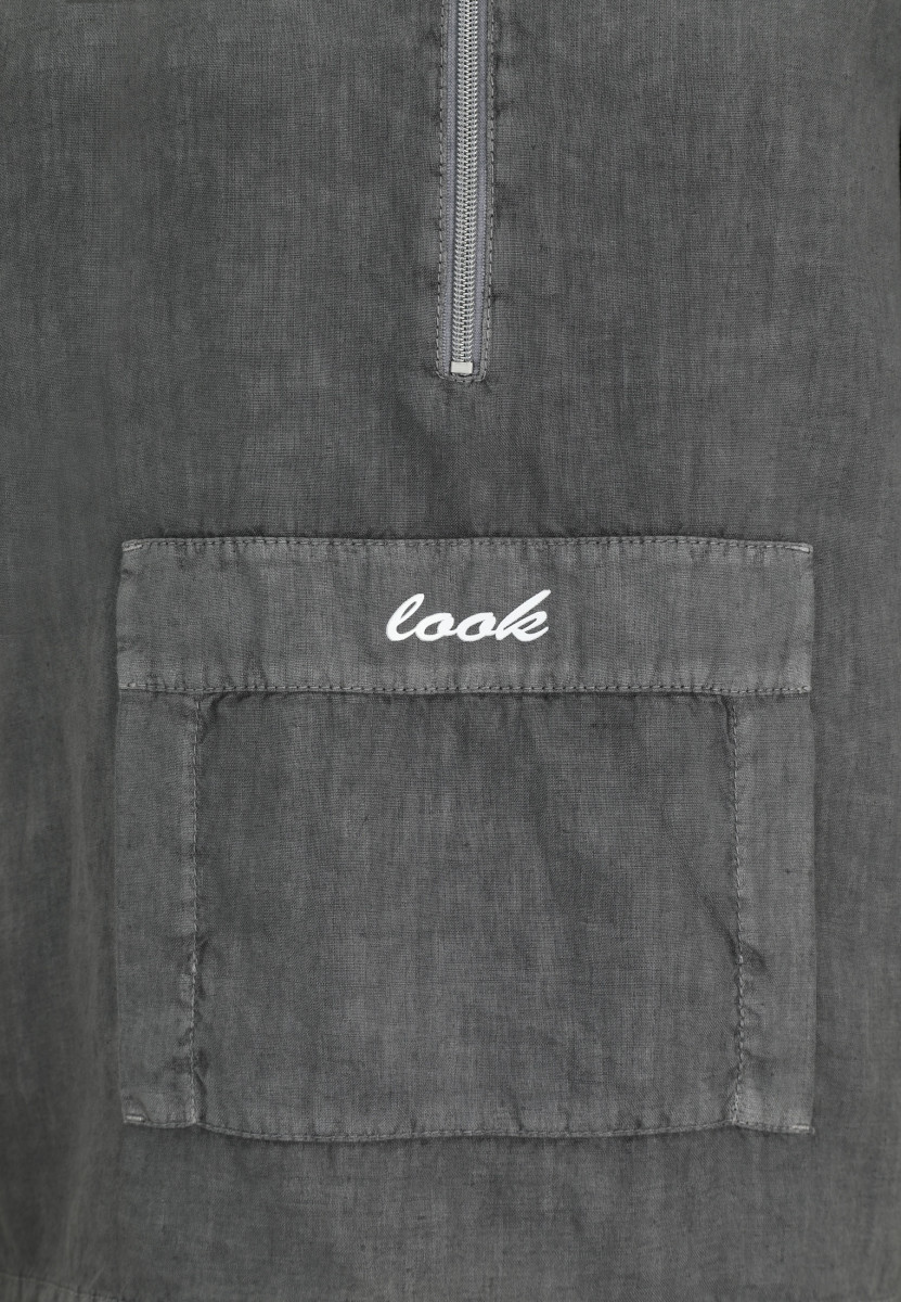 Die lässige Schlupfbluse aus softem Leinen von Doris Streich kommt in einem angesagten, fließenden Schnitt. Ein Hingucker ist die Vintage-Waschung im Used-Look. Die softe Leinen-Qualität sorgt für einen hohen Tragekomfort. Der Reißverschluss und die lässige Känguru-Tasche mit 3D-Print-Look sowie die Kordeln und Kordelstopper runden den lässigen Look dieser Halbarmbluse mit überschnittenen Schultern ab.Lief.-Art-Nr: 285130