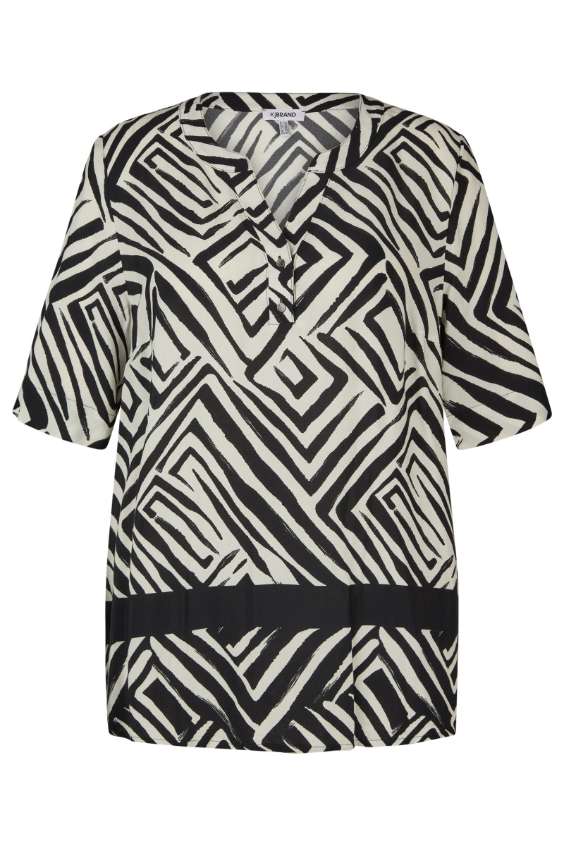 Diese KjBRAND Tunika ist ein Klassiker in Schwarz/Weiss. Ein modischer, grafischer Allover-Print mit Bordüre. Die Qualität ist angenehm auf der Haut zu tragen und hat einen guten Fall.