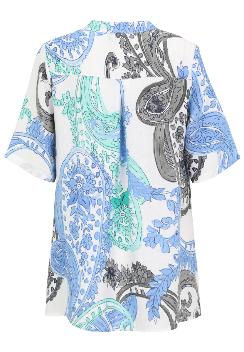 Die lässig feminine Bluse von Doris Streich ist aus softem Leinen gefertigt. Der dekorative Paisley-Print in Pastell-Farben macht diese Halbarm-Bluse zum Hingucker. Die Rückenpasse mit tiefer Falte und die Seitenschlitze bieten höchsten Tragekomfort. Alloverprint, nicht platziert - jedes Teil ein Unikat.Lief.-Art-Nr: 217817