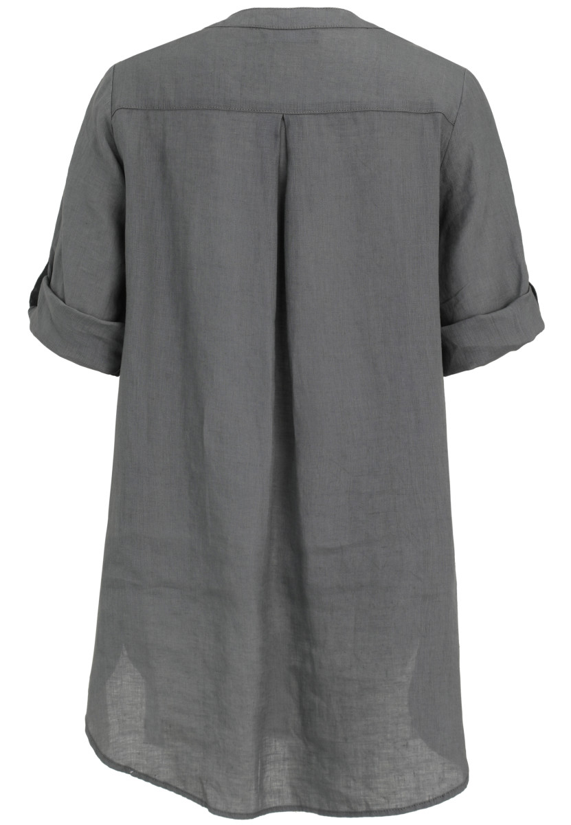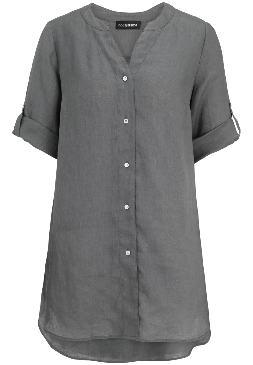 Die Longbluse von Doris Streich ist aus leichtem, supersoftem Leinen gefertigt und verfügt über eine durchgehende Knopfleiste. Die angesagte High‑Low‑Form mit verlängerter Rückenpartie, die weite Falte im Rückenteil und die A‑Linie zaubern eine schlanke Silhouette, während V‑Ausschnitt und Laschen an den Ärmeln, mit denen man die Ärmel raffen oder krempeln kann, die Bluse modisch abrunden. Ein vielseitig kombinierbares Teil für den Alltag.Lief.-Art-Nr: 281129