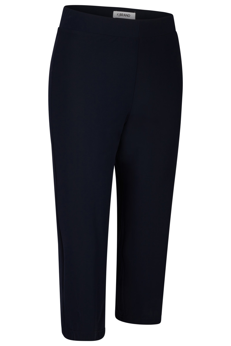 Diese KjBRAND 7/8 Culotte ist eine top-modische Wohlfühlhose aus bi-elastischem Jersey-Material. Die atmungsaktive Qualität ist knitterfrei und hat einen extra Anti-Pilling-Effekt. Das Modell hat Taschen, einen äußerst dehnbaren Schlupfbund und ist aus sehr hochwertigem, leichtem Material gearbeitet. Die moderne 7/8 Länge endet knapp unter der Wade und überspielt daher auch etwas kräftigere Beine. Mit einem längeren Oberteil kombiniert, sind Sie perfekt angezogen. Diese Culotte passt sich durch den hohen Stretchanteil der Figur an, trägt sich super-angenehm auf der Haut und sorgt für einen lässig-gepflegten Look.