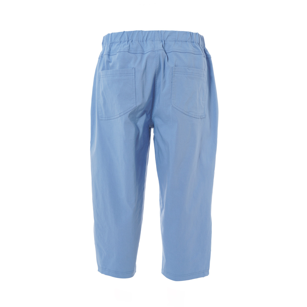 Lockere Capri-Hose in knöchellanger Länge mit leicht ausgestelltem Bein. Gummibund hinten, Reißverschluss vorne, großzügige Taschen vorn und hinten sowie dekorative Knöpfe am Saum – bequem, stylisch und vielseitig tragbar für moderne Casual-Looks.