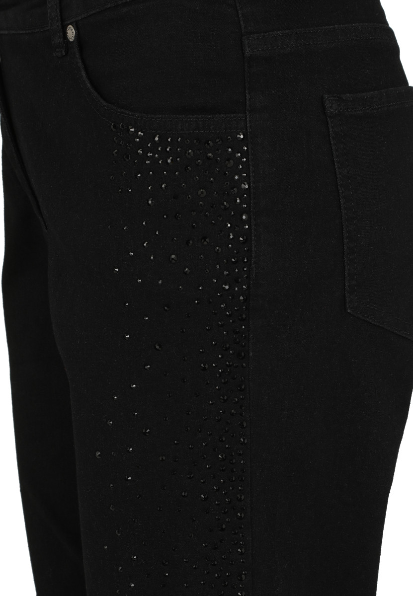 Diese edle schwarze Jeans von Doris Streich ist ein echter Allrounder. Das hochelastische Material liegt dank des Slim-Fit Schnitts eng an und bietet ein Maximum an Komfort und optimale Bewegungsfreiheit. Gleichzeitig lässt sie einen im Handumdrehen eine Größe schlanker wirken und sorgt für eine schöne Silhouette. Abgerundet wird das Modell mit klassischen 5-Pocket Taschen und tonigem schwarzem Strass. In angesagt dunkler Waschung.