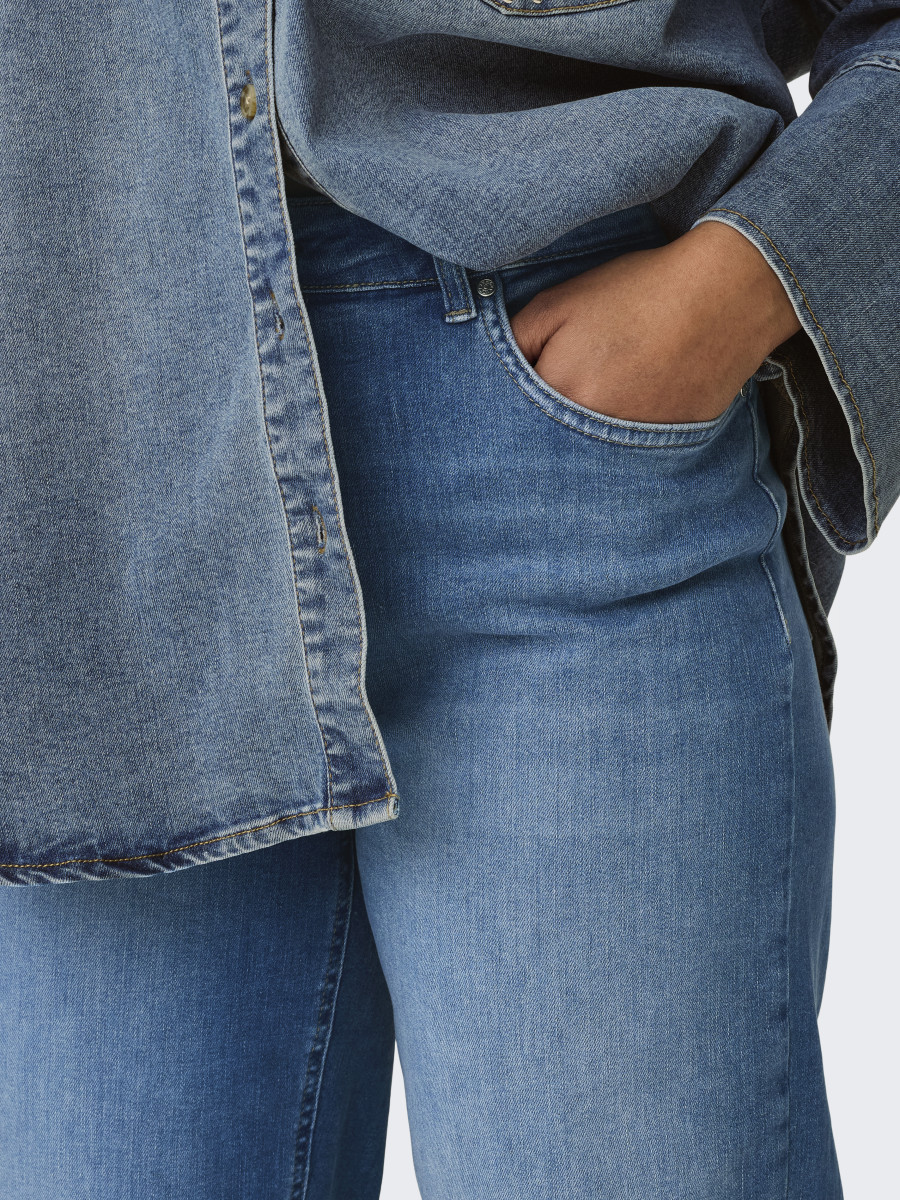 Dein neuer Favorit für die Arbeit und Freizeit wartet: Finde eine coole Jeans mit perfekter Passform und Farbe.ONLY CARMAKOMA ist ein internationales Modelabel für kurvige Frauen in Größe 42 bis 54. Das Label entwirft Styles, die alle Vorzüge von schönen, weiblichen und kurvigen Silhouetten betonen, damit du jeden Tag von morgens bis abends umwerfend aussiehst. - Produkttyp : Wide Fit Jeans - Verschluss : Knopfleiste - Taschen : Gesäßtaschen, Münztasche, Taschen vorn - Taille : Hohe Taille - Details : Gürtelschlaufen - Passform : Bei diesem Wide Fit mit viel Platz von der Hüfte bis zum Knöchel steht der Komfort im Vordergrund