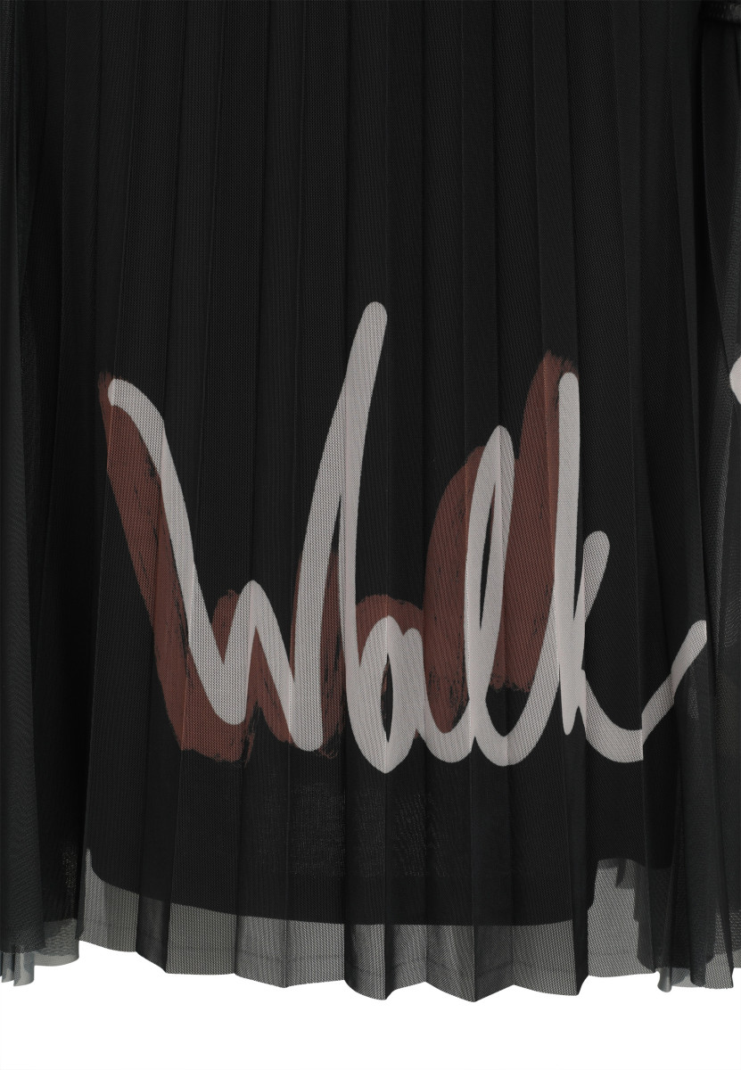 Dieser lässig feminine PlisséeRock von Doris Streich mit markantem Motivprint WALK YOUR PATH auf der Vorder- und Rückseite zieht alle Blicke auf sich: Gefertigt aus elastischem Mesh, gefüttert mit elastischem Single Jersey aus 100 % Viskose.