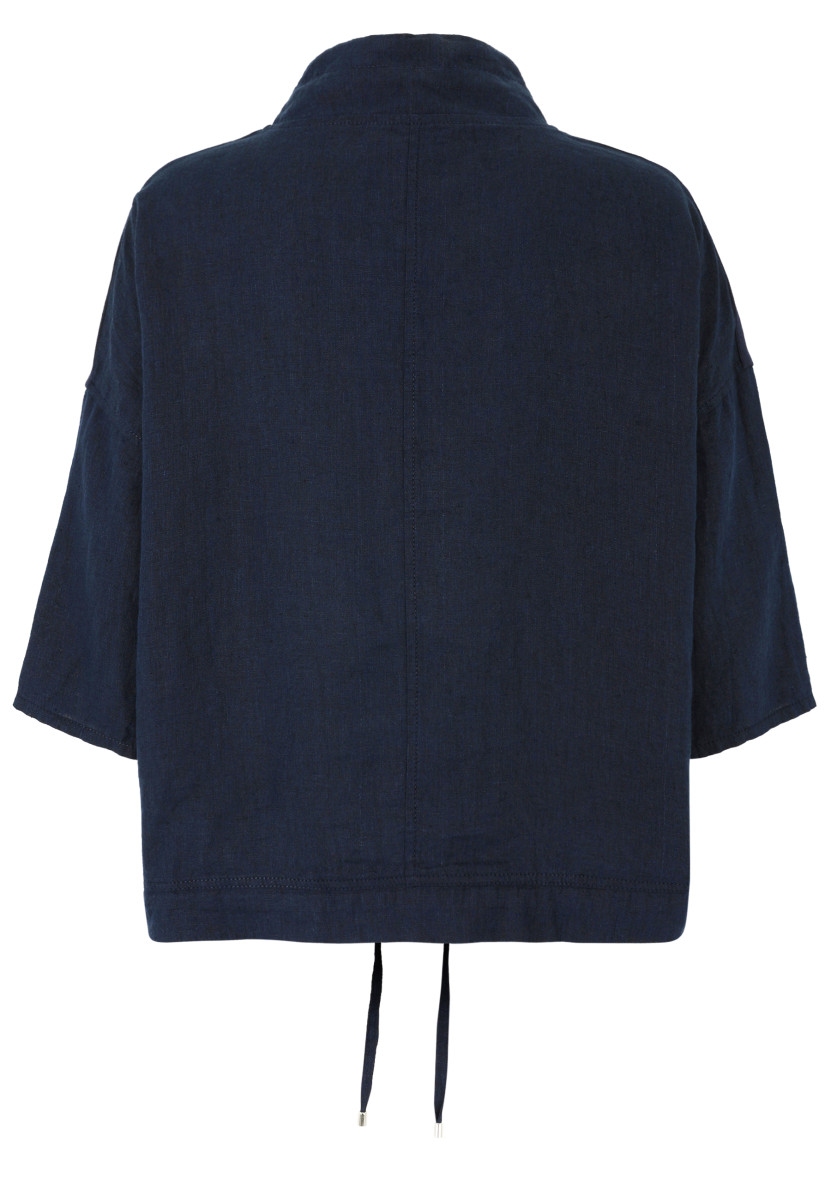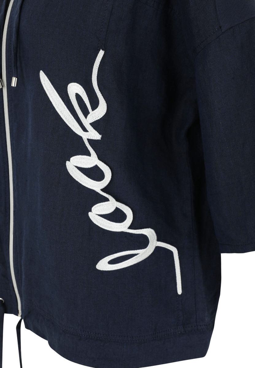 Diese lässige Leinen-Jacke von Doris Streich mit ihren überschnittenen Schultern und edler Stickerei LOOK an der Taschenkante, ist ein Hingucker. Der Reißverschluß und die Bändel rundet das 3/4-Arm Modell ab.