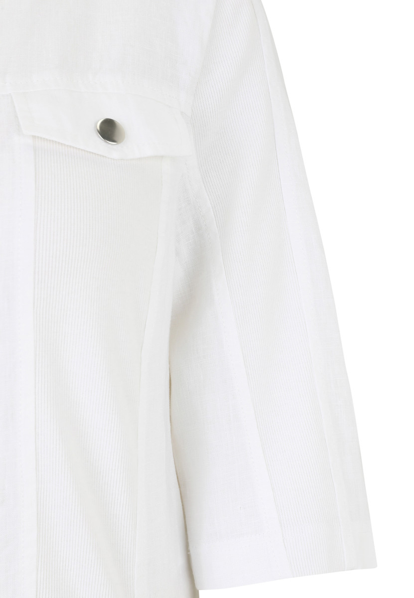 Diese legere Leinen-Jacke von Doris Streich im verkürzten Jeansjacken-Stil ist ein Hingucker mit ihrem lockeren Stehkragen, dem verdeckten Druckknopf-Verschluss und den zwei Patten. Die 3/4-Arm Jacke bietet maximalen Tragekomfort. Sie ist das perfekte Darüber für einen lässigen Lagenlook.