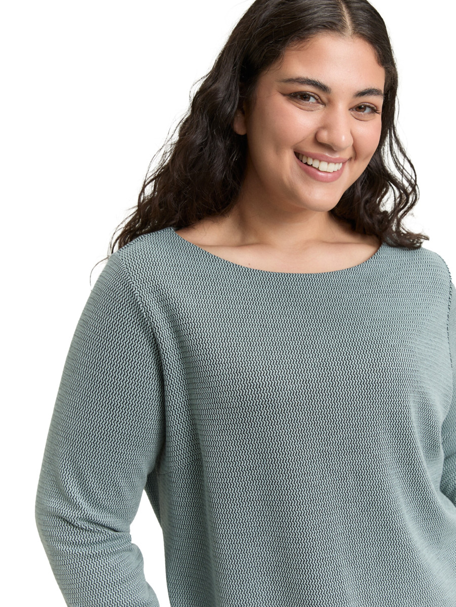 Strukturiertes Jacquard-Kleid | U-Boot-Ausschnitt | Langarm | Überknie Länge | Stretch-Anteil | Curvy