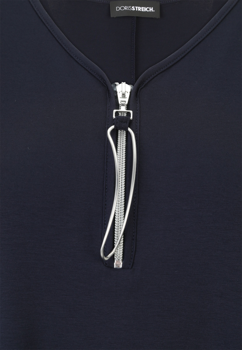 Das weit ausgestellte Long-Shirt von Doris Streich ist ein Hingucker: Der dekorativ geformte große silberfarbene Anhänger am Zipper zieht die Blicke auf sich. Das Shirt punktet mit hohem Tragekomfort: Die weiche elastische Materialmischung fällt leger.