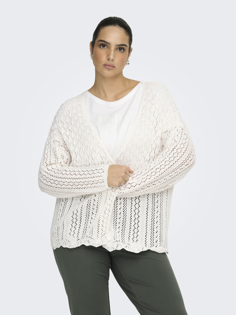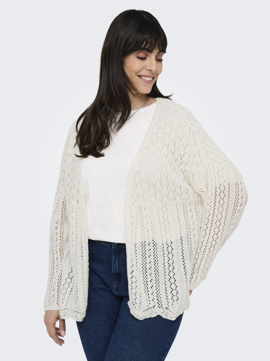 Vervollständige deinen Look mit einem zeitlosen, femininen Cardigan, der sich weich anfühlt und für angenehme Wärme sorgt. Das Strukturstrickmuster verleiht dem Modell eine interessante Optik und eine klare Silhouette, während der locker sitzende Schnitt viel Bewegungsfreiheit bietet. Speziell für kurvige Frauen entworfen, betont dieses Teil die Figur und lässt sich vielseitig kombinieren.Lief.-Art-Nr: 15348621-CARNOLA 7/8 OPEN CARDIGAN KNT N