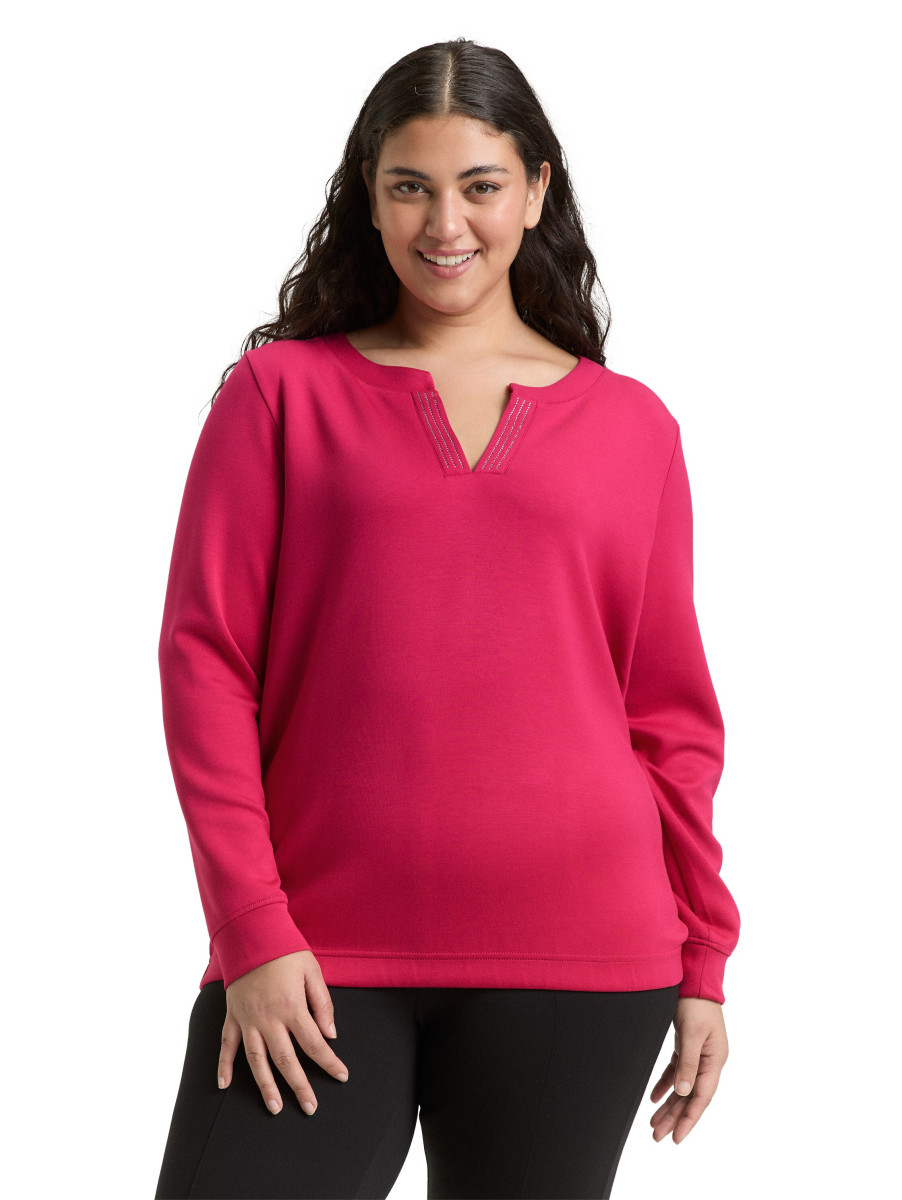 Henley-Ausschnitt | Langarm | Regular Fit | Strasssteine am Ausschnitt | Elastisches Gummibund am Saum | Aus einem weichen, knitterarmen und elastischen Scuba-Stoff.