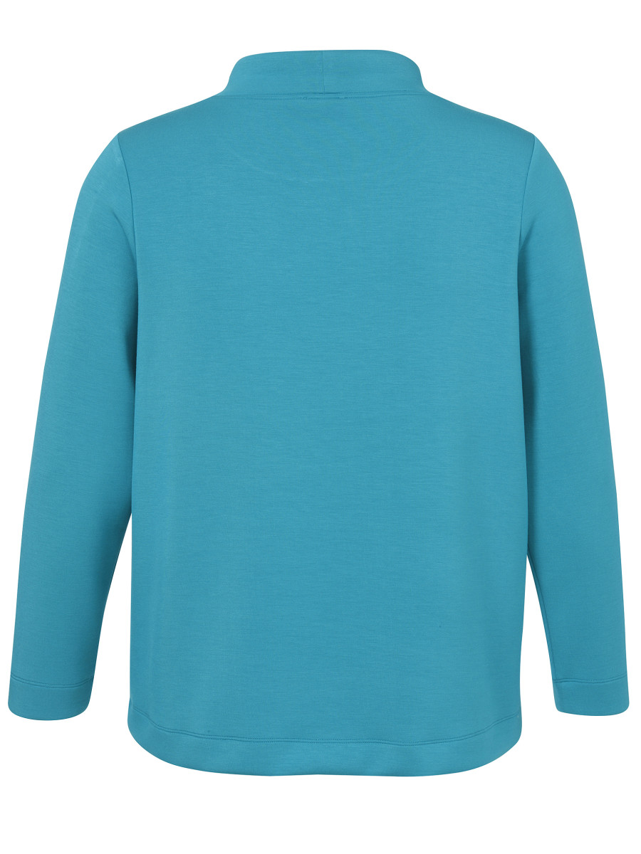 Dieses Sweatshirt in einem stilvollen, zarten Blau ist der perfekte Mix aus Komfort und modischem Design. Der hohe Kragen mit Tunnelzug bietet nicht nur eine praktische Möglichkeit zur Anpassung, sondern verleiht dem Sweatshirt auch eine sportlich-elegante Ausstrahlung. Die langen Ärmel und das weiche, angenehme Material machen es zu einem idealen Begleiter für kühlere Tage. Ein besonderes Highlight ist das dezente Strass-Detail an der Seite, das dem sonst schlichten Design einen eleganten Touch verleiht. Der gerade Schnitt und der leichte Stretchanteil sorgen für eine bequeme Passform, die den ganzen Tag über angenehm bleibt. Kombinieren Sie das Sweatshirt mit Jeans oder sportlichen Hosen für einen entspannten, aber modischen Look, der vielseitig einsetzbar ist – ob für den Alltag oder die Freizeit.