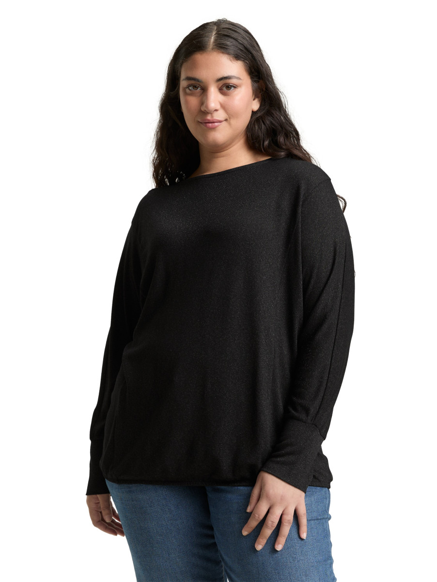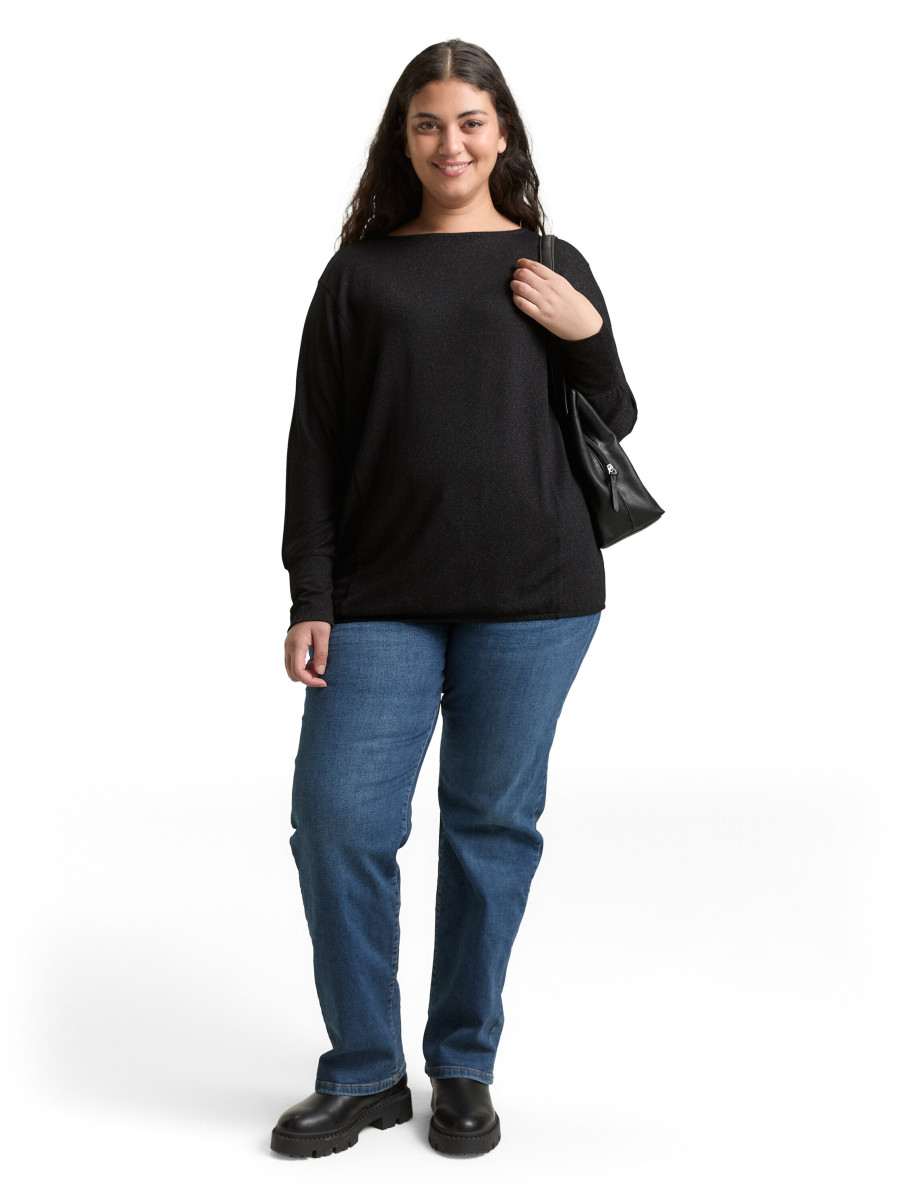 Curvy Loose Fit Langarmshirt mit Glitzer-Effekt