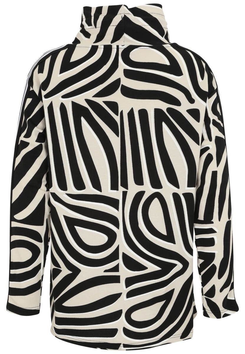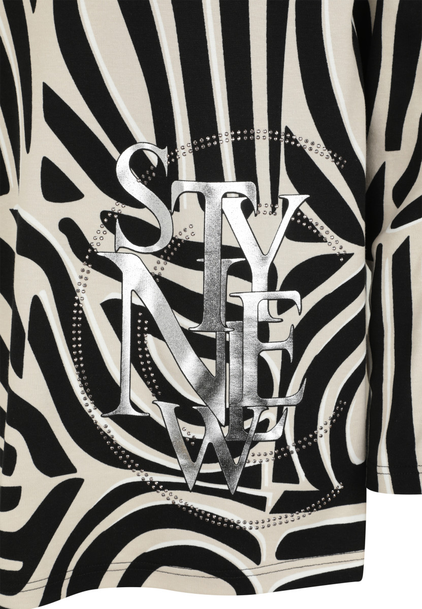 Das edle Sweatshirt von Doris Streich ist aus softer Sweatware gefertigt. Der markante Grafik-Print, das silberne Motiv NEW STYLE mit Plättchen und die angesagten Streifen-Bänder auf den Ärmeln runden den femininen Look ab. Durch das elastische Material und die gerade Schnittführung bietet dieser Style höchsten Tragekomfort. Alloverprint, nicht platziert - jedes Teil ein Unikat.