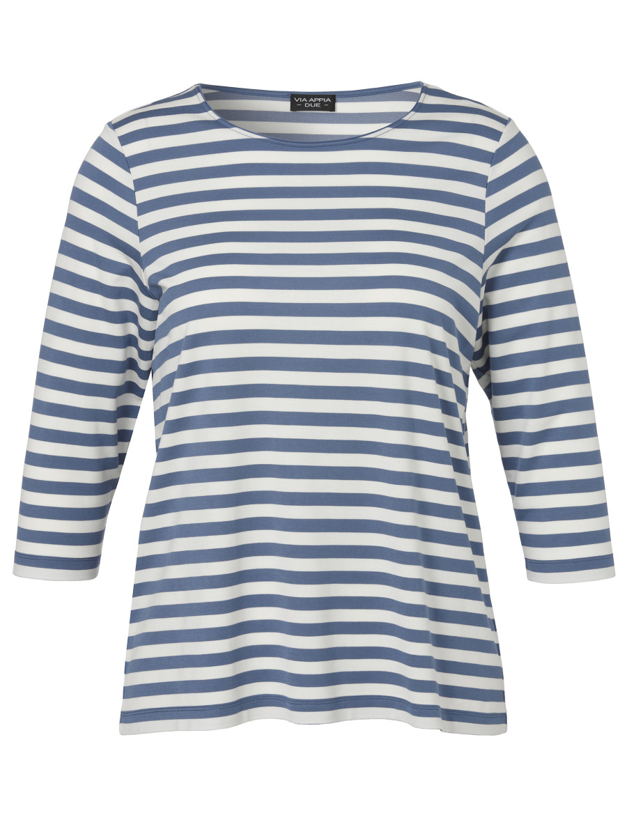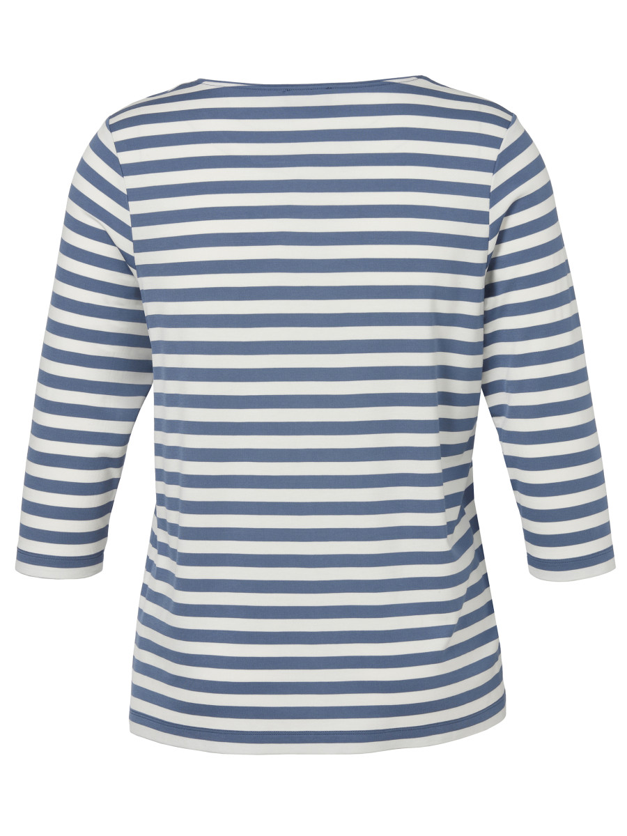 Mit seinem klassischen Streifenmuster in eleganten Blau- und Weißtönen ist dieses Langarmshirt ein wahres Allround-Talent für Ihre Garderobe. Der gerade Schnitt sorgt für eine bequeme Passform und betont die schlichte Eleganz dieses zeitlosen Designs. Der Rundhalsausschnitt rundet das Shirt mit einem klassischen, aber modernen Akzent ab, während die langen Ärmel das Shirt zu einem idealen Begleiter für kühlere Tage machen. Die weich fallende, angenehme Baumwollqualität sorgt für höchsten Tragekomfort und eine hervorragende Passform. Ob in der Freizeit, im Büro oder beim Ausgehen – dieses gestreifte Shirt lässt sich vielseitig kombinieren und wird schnell zu einem Lieblingsstück. Ein absoluter Klassiker, der nie aus der Mode kommt und für einen frischen, unkomplizierten Look sorgt.
