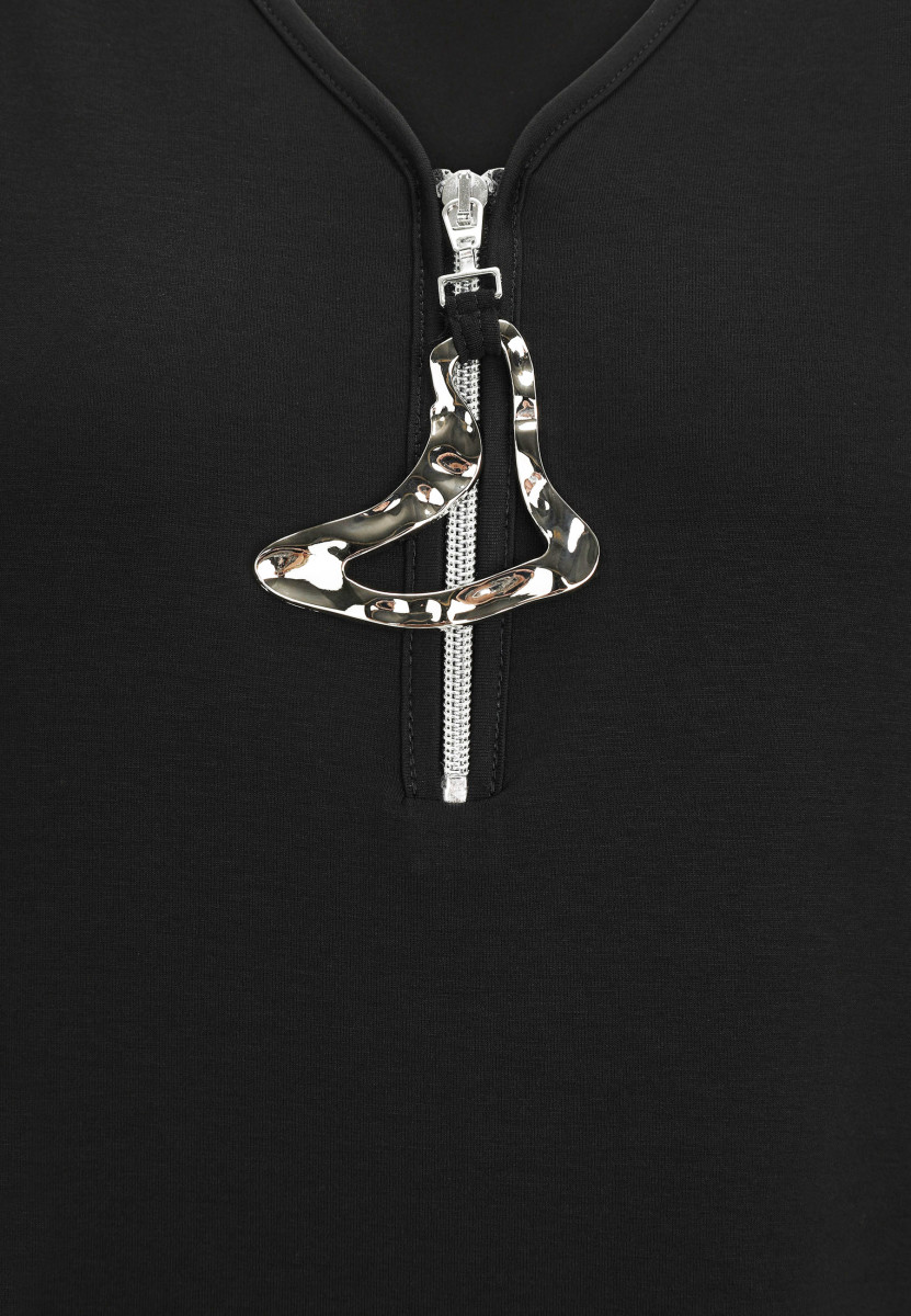 Das lässig überschnittene Long-Shirt von Doris Streich ist ein Hingucker: Der dekorative silberfarbene metallische Anhänger am Zipper zieht die Blicke auf sich. Die angesagte High-Low-Form mit verlängerter Rückenpartie unterstreicht den lässigen Look. Das 3/4-Arm Shirt punktet mit hohem Tragekomfort: Die weiche elastische Materialmischung fällt leger.