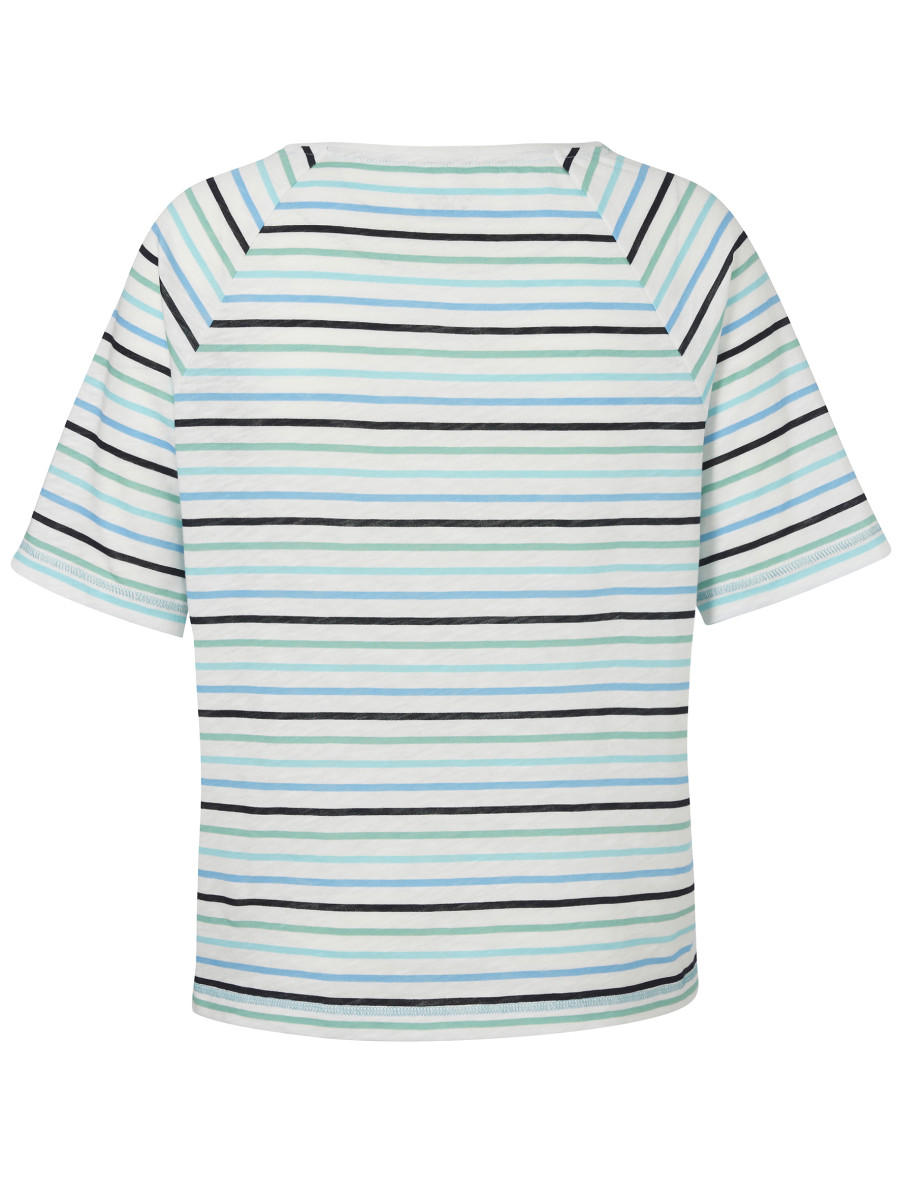 Das Damen T-Shirt präsentiert sich mit Rundhalsausschnitt und halblangen Ärmeln. Der klassische Schnitt und das dezente Ringelmuster machen es zu einem vielseitigen Begleiter für den Alltag. Es lässt sich sowohl zu Jeans als auch unter einer leichten Jacke kombinieren und sorgt für einen gepflegten, lässigen Look.Lief.-Art-Nr: 2612454