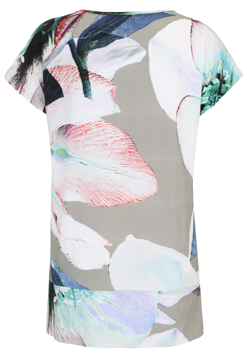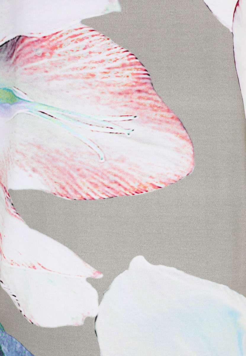 Das lässig überschnittene Shirt von Doris Streich besticht durch seinen pastelligen, floralen fotorealistischen Makro-Print. Die angesagte High-Low-Form mit verlängerter Rückenpartie und Seitenschlitzen unterstreicht den lässigen Look. Das Shirt punktet mit hohem Tragekomfort, die weiche elastische Materialmischung fällt leger; Alloverprint, nicht platziert – jedes Teil ein Unikat.Lief.-Art-Nr: 581820