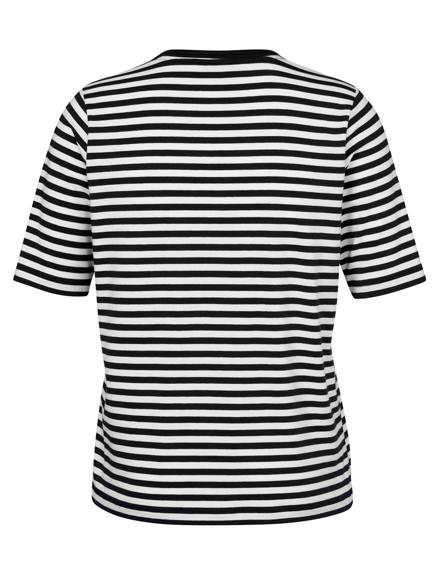 Kurzärmlig | V-Ausschnitt | Lockere Passform | Gestreift | Stretch | Material-Mix