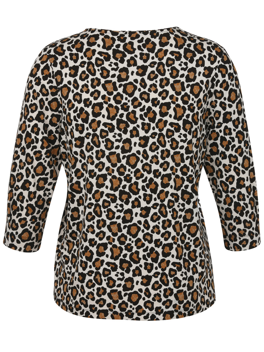 Mit diesem modischen Damen-Shirt von VIA APPIA DUE liegst du voll im Trend! Der ausdrucksstarke Allover-Leo-Print in warmen Braun- und Schwarztönen auf hellem Grund verleiht deinem Look eine selbstbewusste, moderne Note – perfekt für Fashionistas, die auffallen möchten.