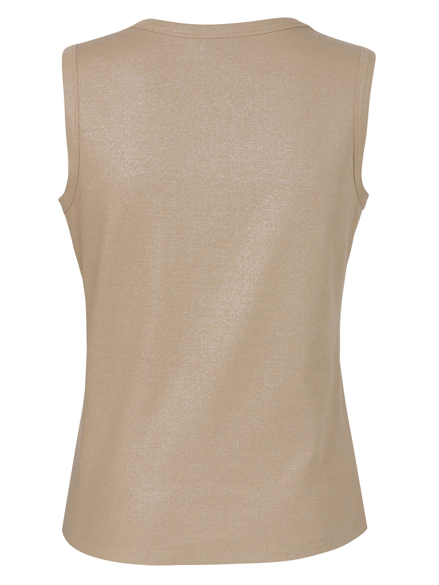 Dieses ärmellose Top von VIA APPIA DUE ist ein echter Allrounder für jede Garderobe. In edlem Beige und mit einem feinen, dezenten Glitzereffekt lässt sich dieses Basic-Shirt vielseitig kombinieren – ob als Unterzieher unter Blazern und Cardigans oder solo zu Jeans, Röcken oder Stoffhosen.