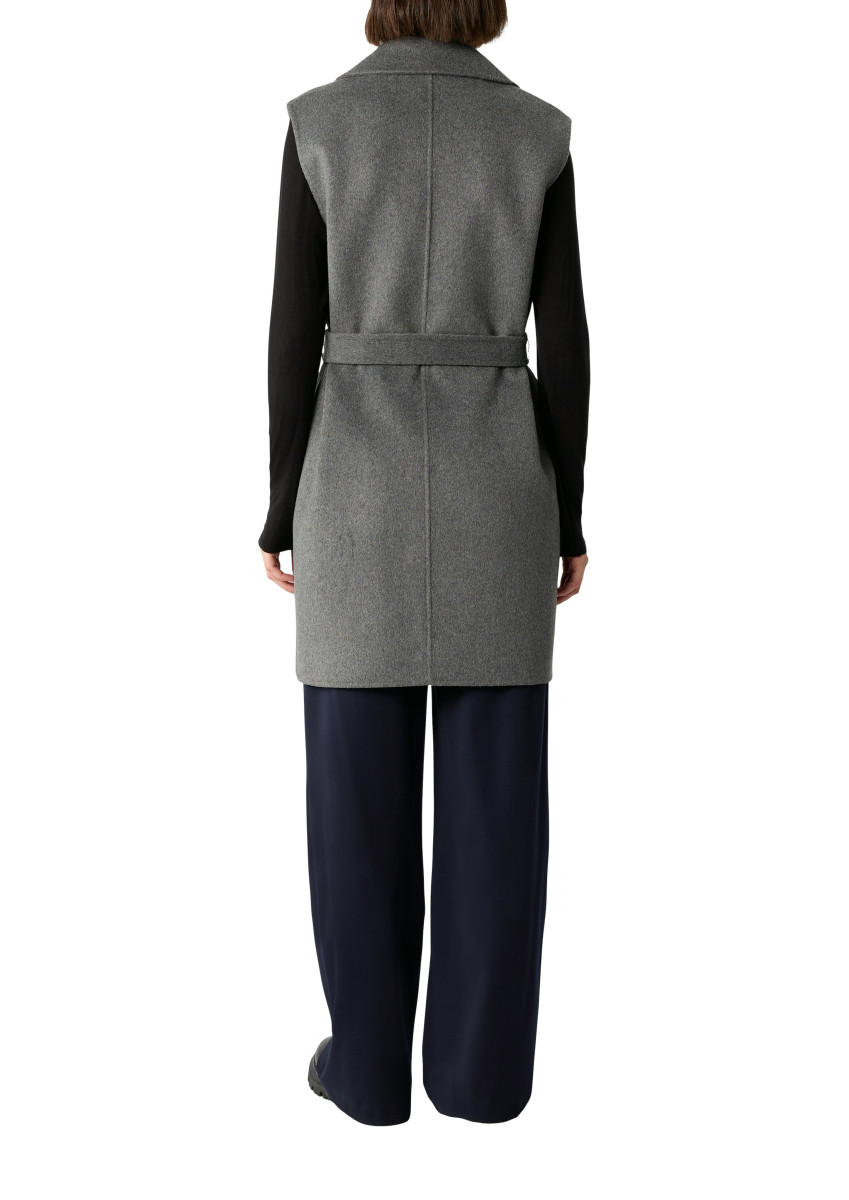 Die vielseitige Weste aus hochwertigem Wollmix vereint Eleganz und Lässigkeit. Mit ihrem klassischen Reverskragen und den praktischen Leistentaschen ist sie ein stilvolles Statement-Piece. Der Bindegürtel akzentuiert Ihre Silhouette und ermöglicht variable Looks. Perfekt für Business-Meetings oder festliche Anlässe - layern Sie die Weste für kühlere Abende über ein Shirt oder eine Bluse.