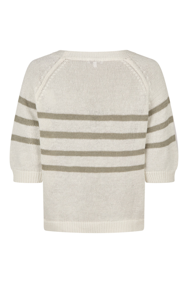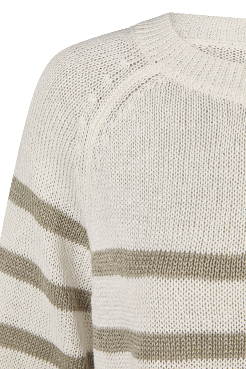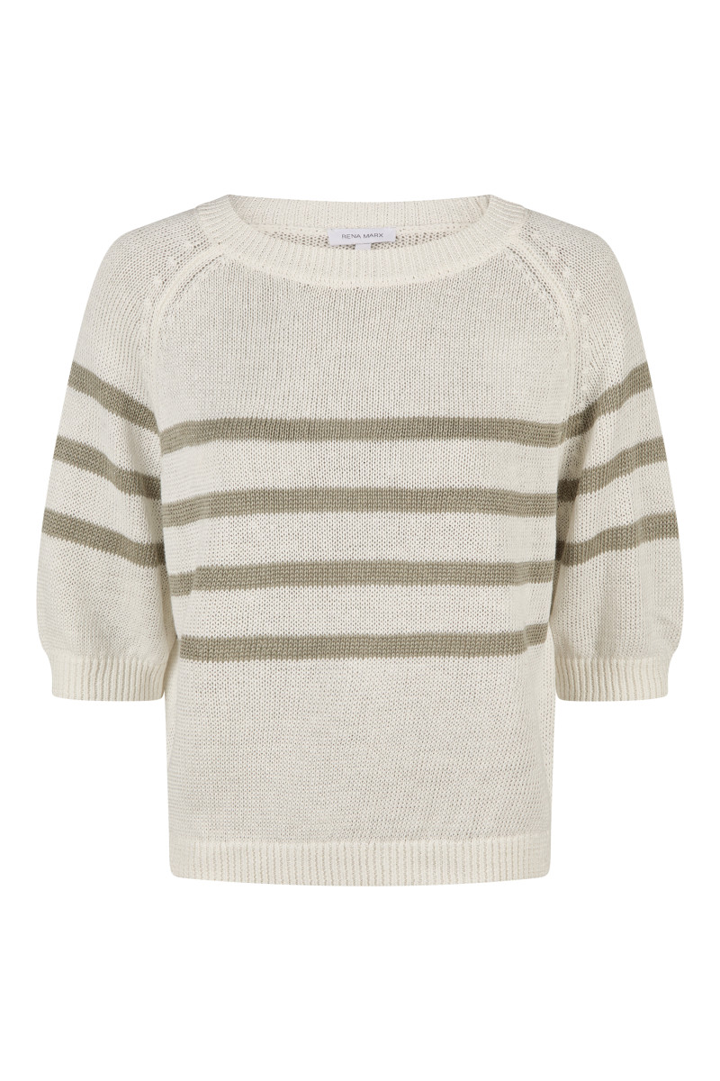Rundhalsausschnitt | Rippbündchen | Gestreift | Strick | Lockere Passform | 3/4-Arm | Leinen