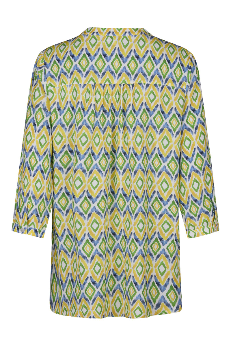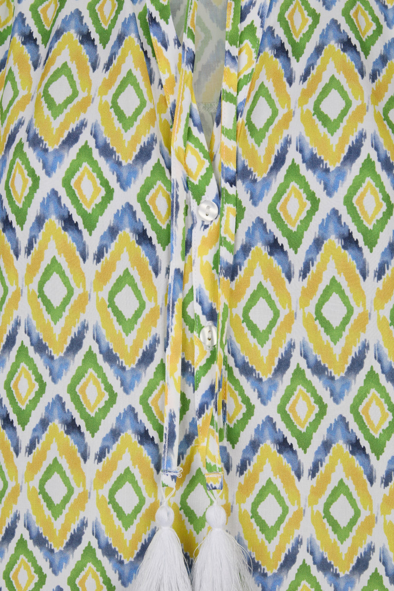 Rundhalsausschnitt mit V-Schlitz und Schleife | Knopfleiste | Langarm | Muster | Lang | Leinen