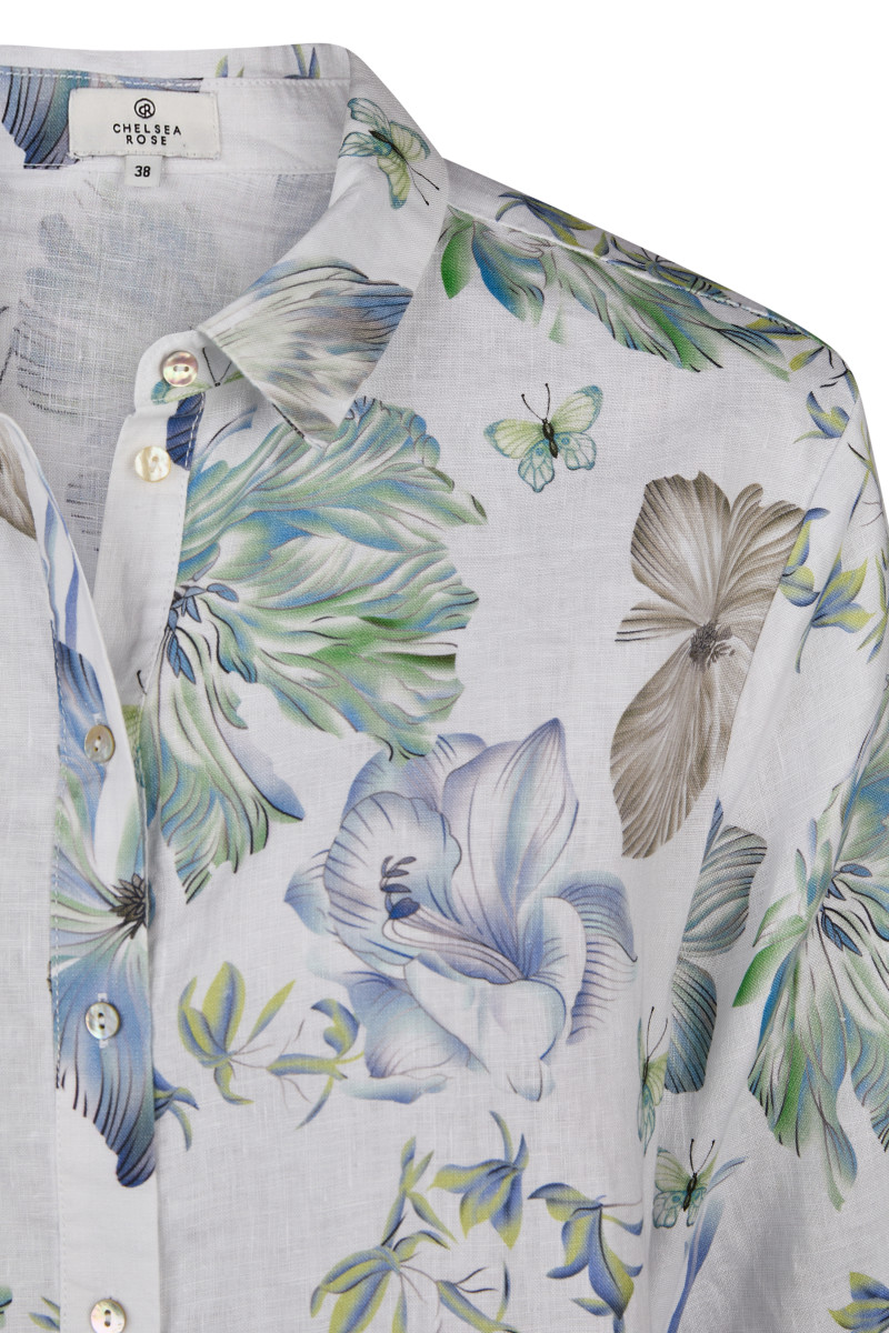 Hemdkragen | Durchgehende Knopfleiste | Floral gemustert | Leinen | Lang geschnitten
