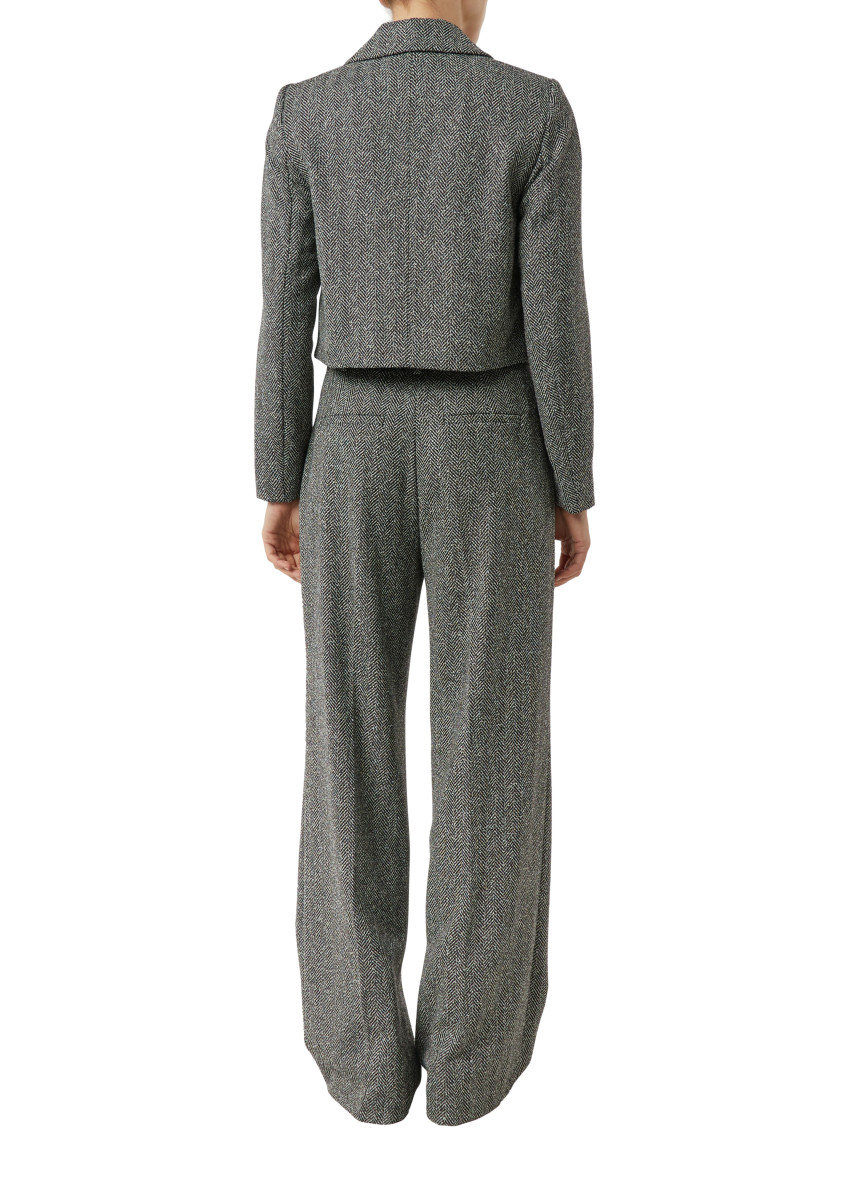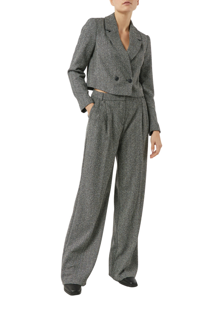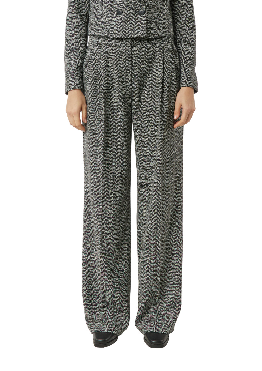 Diese elegante Bundfaltenhose im klassischen Herringbone-Muster vereint zeitlose Eleganz mit Stil. Die fließende Webware schmeichelt der Figur, während der Wide Leg-Schnitt für eine moderne Silhouette sorgt. Der Mid Rise-Bund mit Bundfalten betont die Taille auf vorteilhafte, feminine Art und Weise während die praktischen Eingrifftaschen Alltagstauglichkeit garantieren. Sie lässt sich mühelos up- oder downdressen: Mit Bluse und Pumps entsteht ein Business-Look, kombiniert mit Sneakers und T-Shirt wird daraus ein lässiges Casual-Outfit.