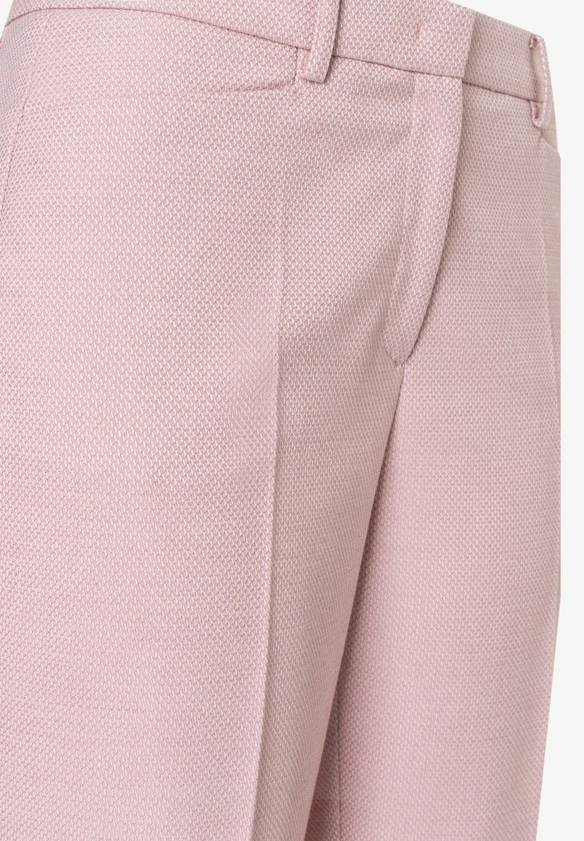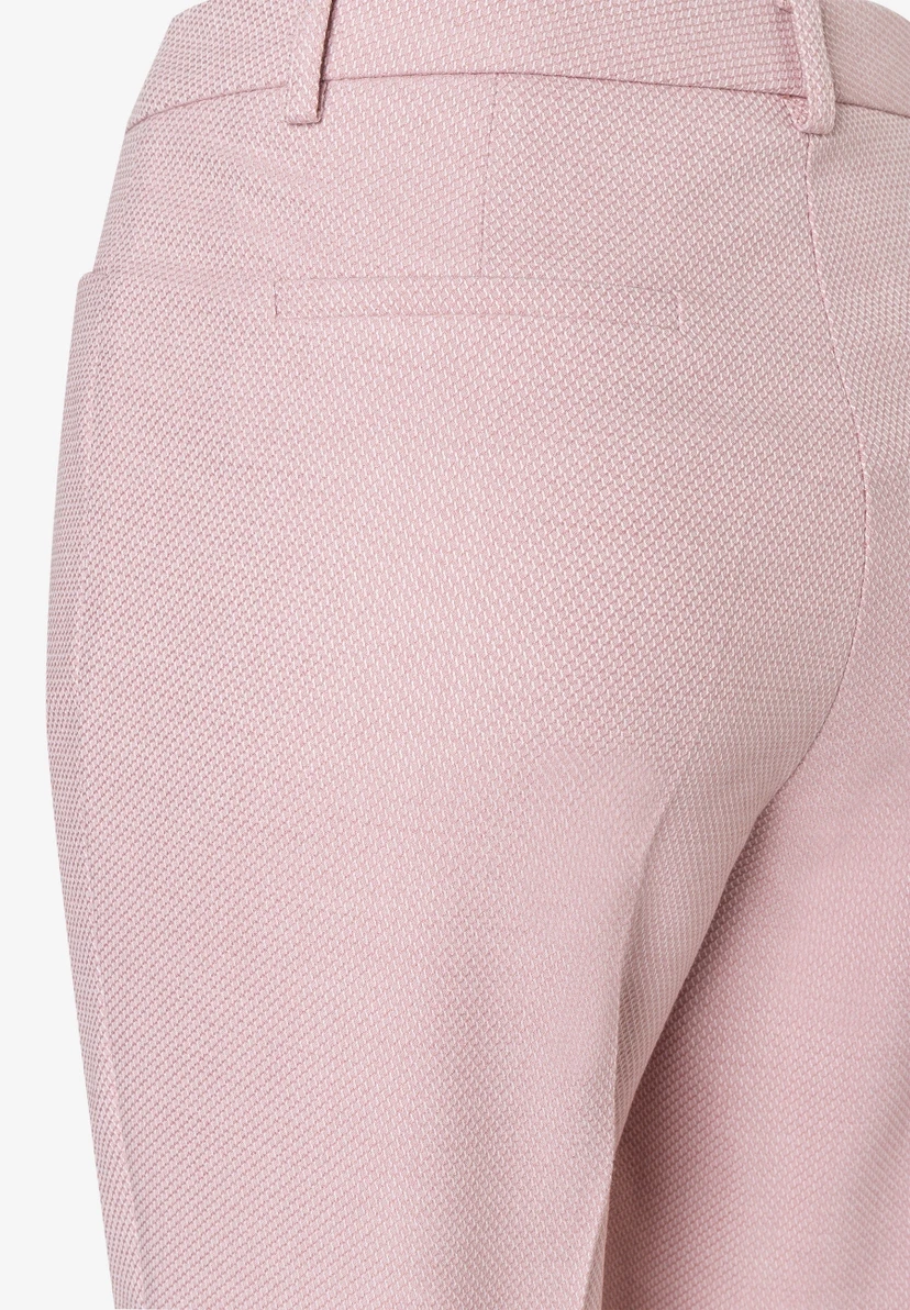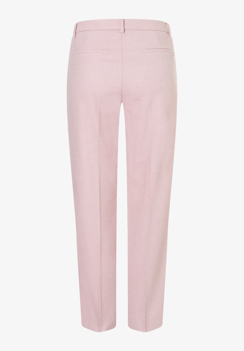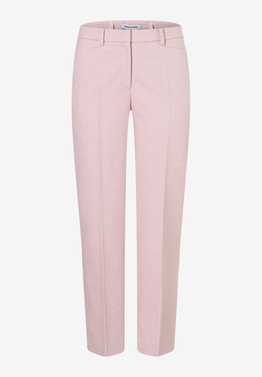 Schlanke Silhouette mit geradem Bein | Normale Leibhöhe | Verdeckter Frontverschluss | Bund und Gürtelschlaufen | Bügelfalte | Zwei Einstecktaschen vorne | Oberstoff mit feiner Piqué-Struktur