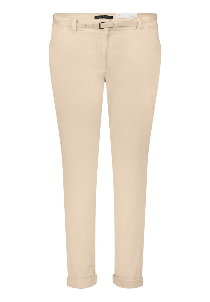 Die Damen Chino-Hose besticht durch ihre Relaxed-Fit-Passform und die mittelhohe Leibhöhe, die für einen lässig-eleganten Look sorgt. Mit einer Schrittlänge von 75 cm und einer Fußweite von 32 cm bietet sie eine angenehme Passform und hohen Tragekomfort. Praktische Details wie Paspel- und französische Taschen sowie Knopf- und Reißverschluss runden das schlichte Uni-Design ab; ein schmaler Gürtel ist inklusive.Lief.-Art-Nr: 61312520