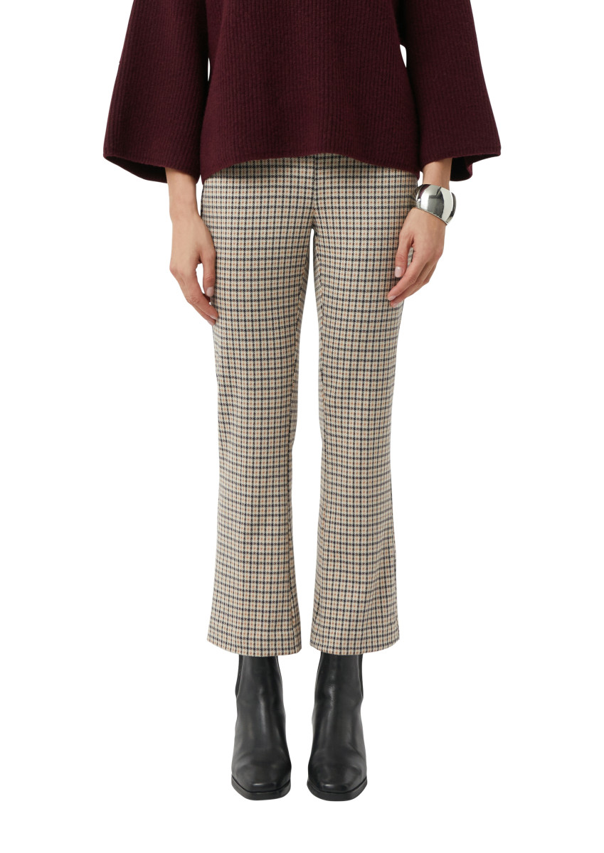 Stilvolle Eleganz trifft auf modernen Komfort: Diese verkürzte Jerseyhose mit Flared Leg vereint zeitgemäßes Design mit höchstem Tragekomfort. Das feine Jacquardmuster verleiht dem Slim Fit-Schnitt eine besondere Note, während die Mid Rise-Bundhöhe Ihre Silhouette optimal betont. Vielseitig kombinierbar eignet sich diese Hose perfekt für Business-Meetings, entspannte Casual-Looks oder Ihren nächsten Urlaub.