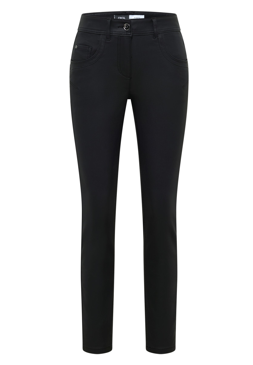 Die beschichtete Hose von CECIL für Damen begeistert im angesagten Leder-Look mit leichtem Glanz. Slim Fit, Mid Waist und Slim Legs sorgen für eine figurbetonte Passform, während der Viskosemix mit Stretchanteil angenehmen Tragekomfort bietet. Der 5-Pocket-Style rundet den rockig-edlen Look stilvoll ab. Beschichtete Hose im Slim Fit Mid Waist und Slim Legs 5-Pocket Leicht glänzende Beschichtung Viskosemix mit Stretchanteil